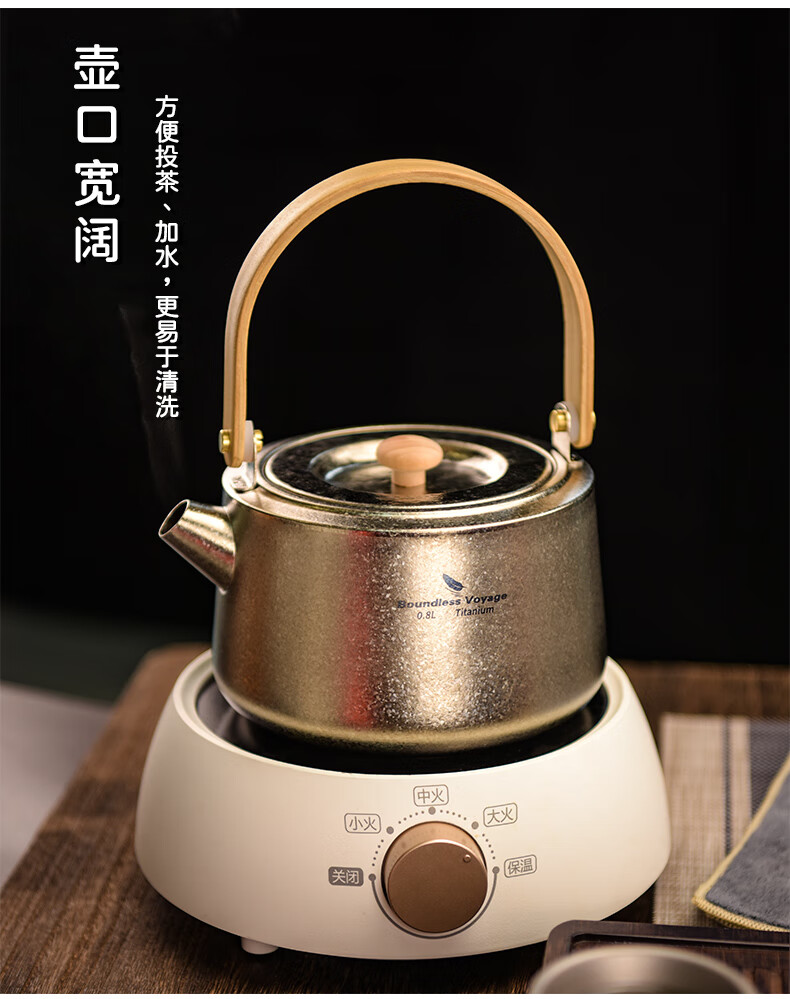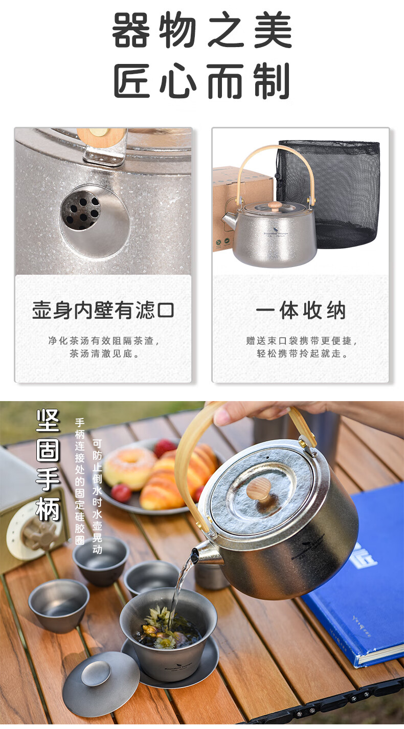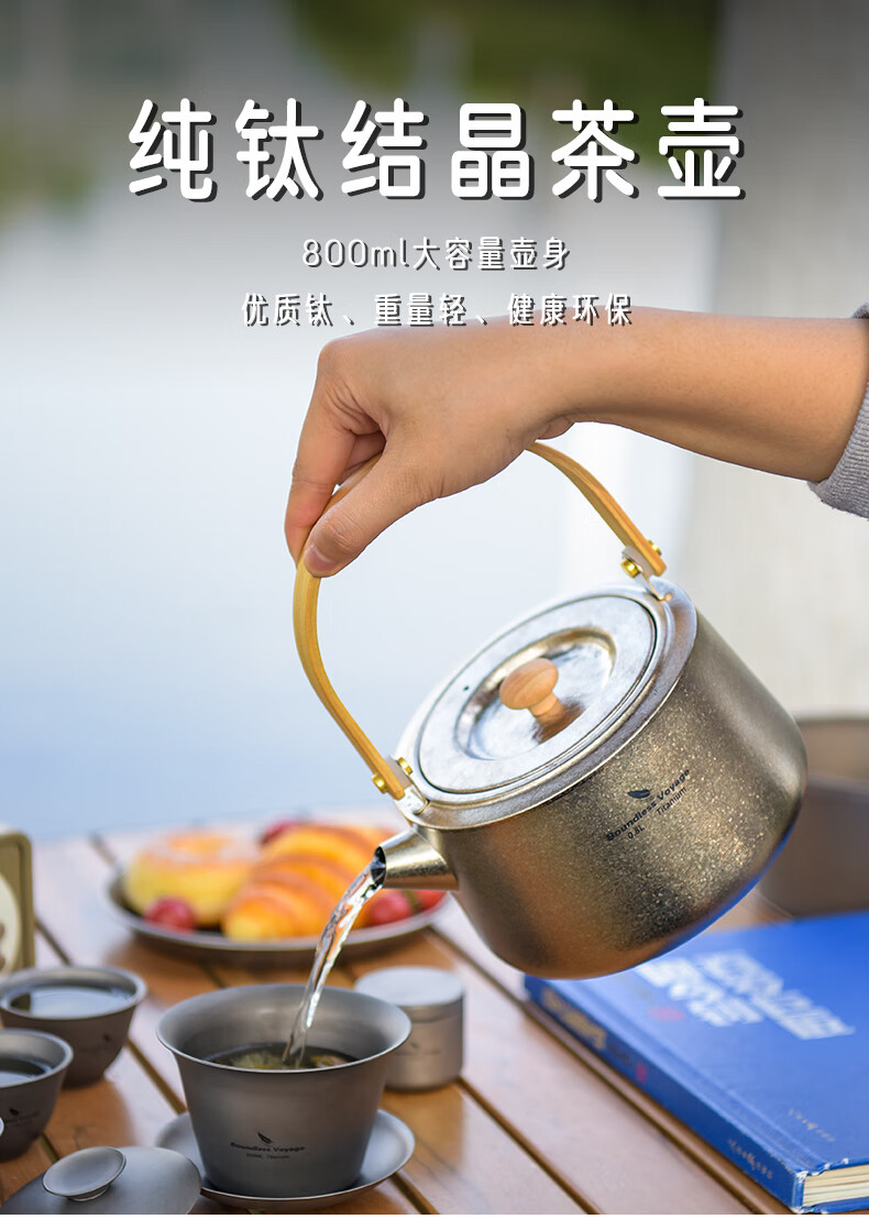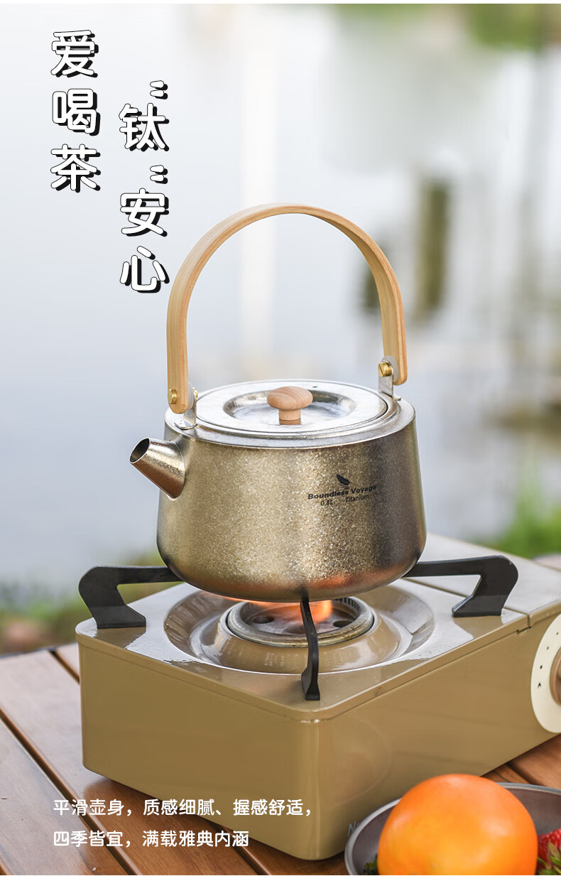 必唯(BOUNDLESS VOYAGE)微瑕疵纯钛烧水壶户外煮茶壶800ml折叠手柄便携露营茶具泡茶壶 800ML Ti3130D