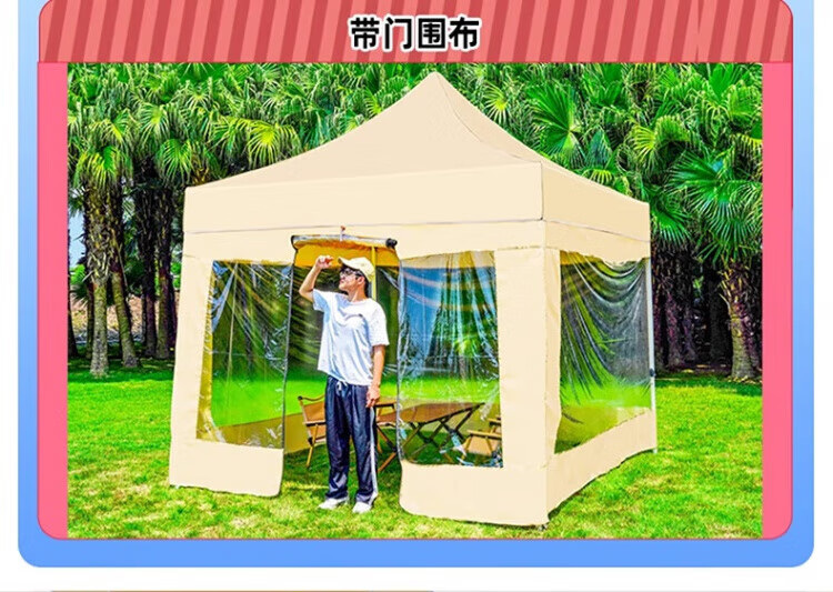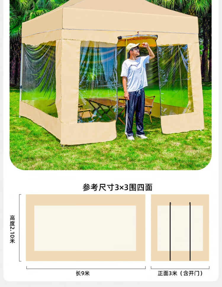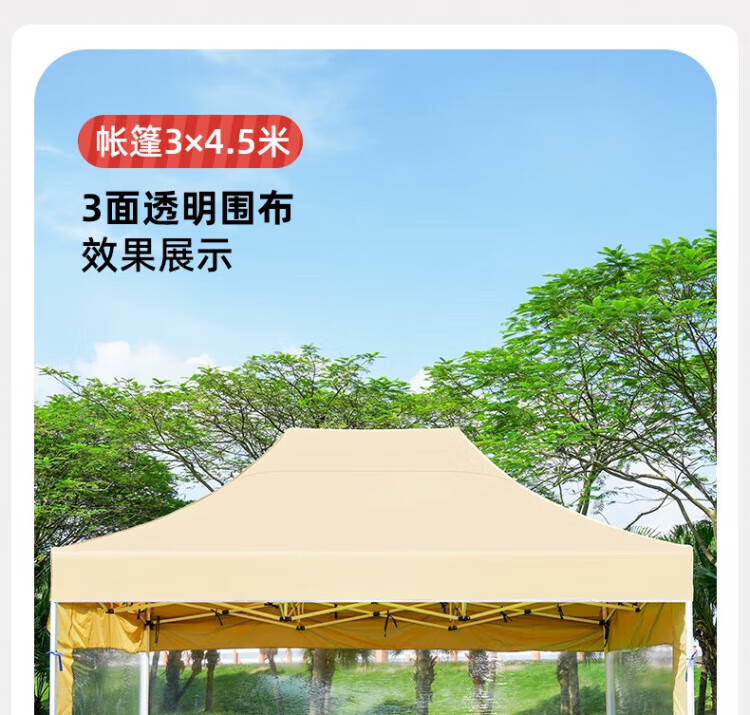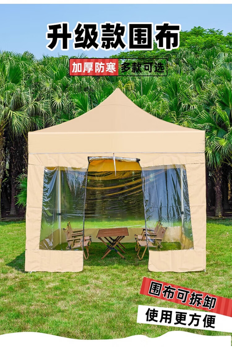 歌途乐卡其色帐篷围布 遮阳棚四角三面四面大伞折叠户外雨棚夜市摆摊 3米卡其色围布(透明)