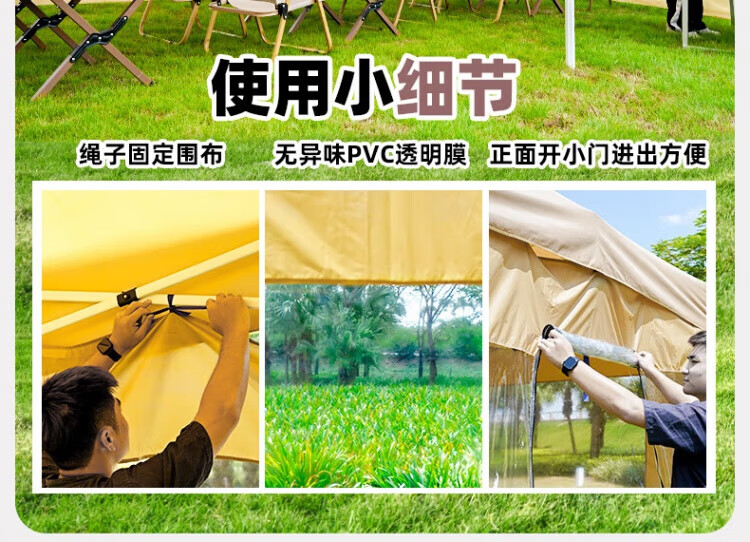 旅行家云亭防蚊黑胶天幕户外露营遮阳防晒防雨蚊帐帐篷野餐便携遮阳棚 卡其色(带蚊帐)