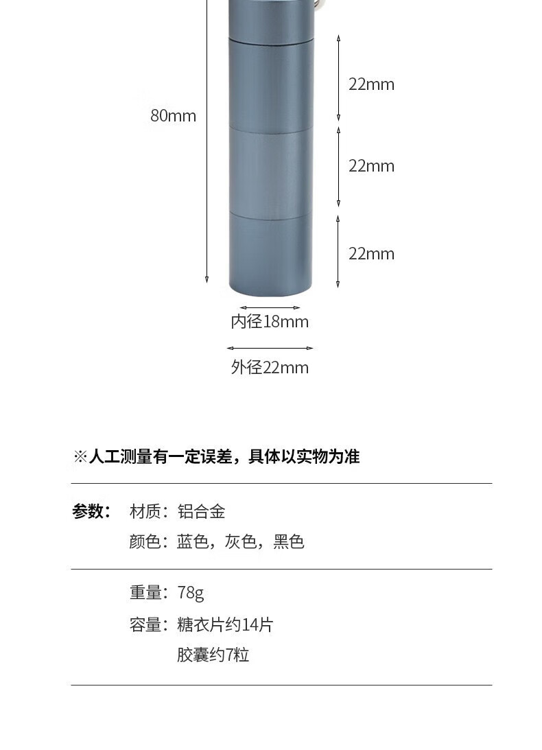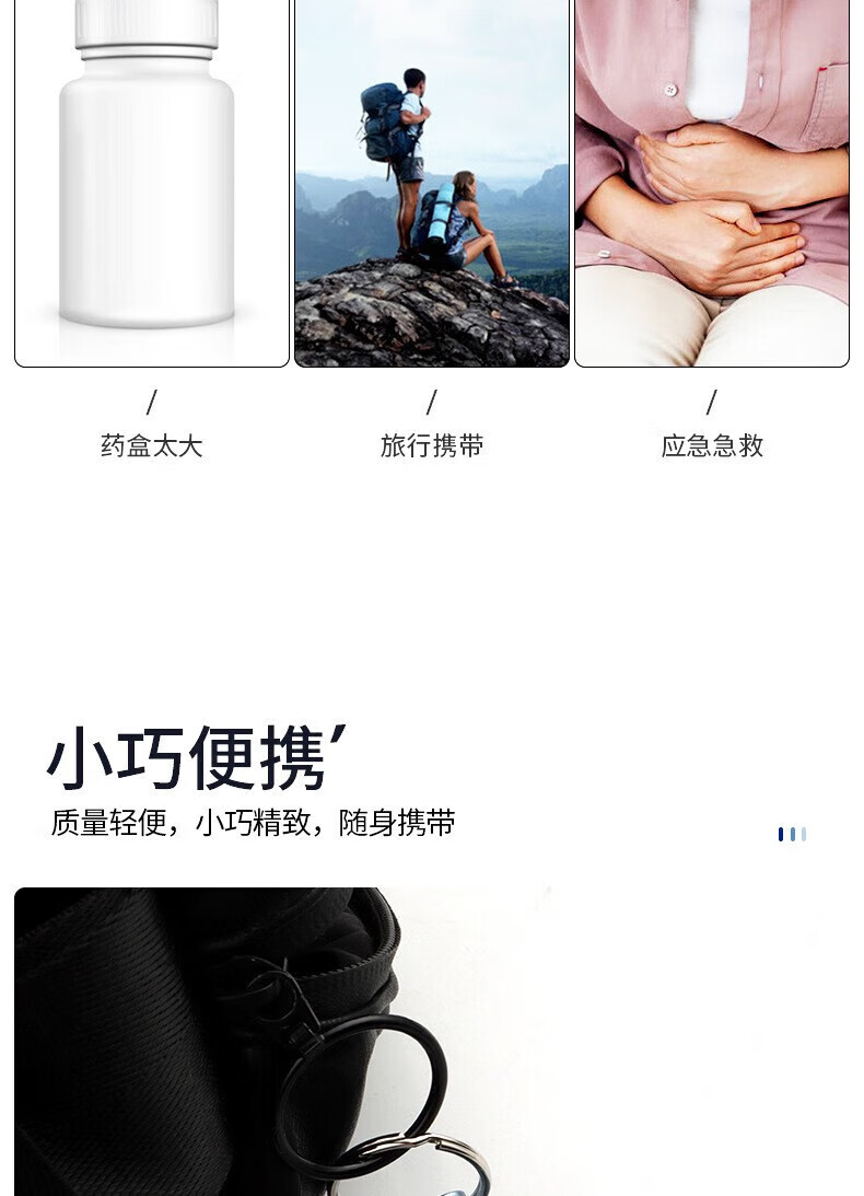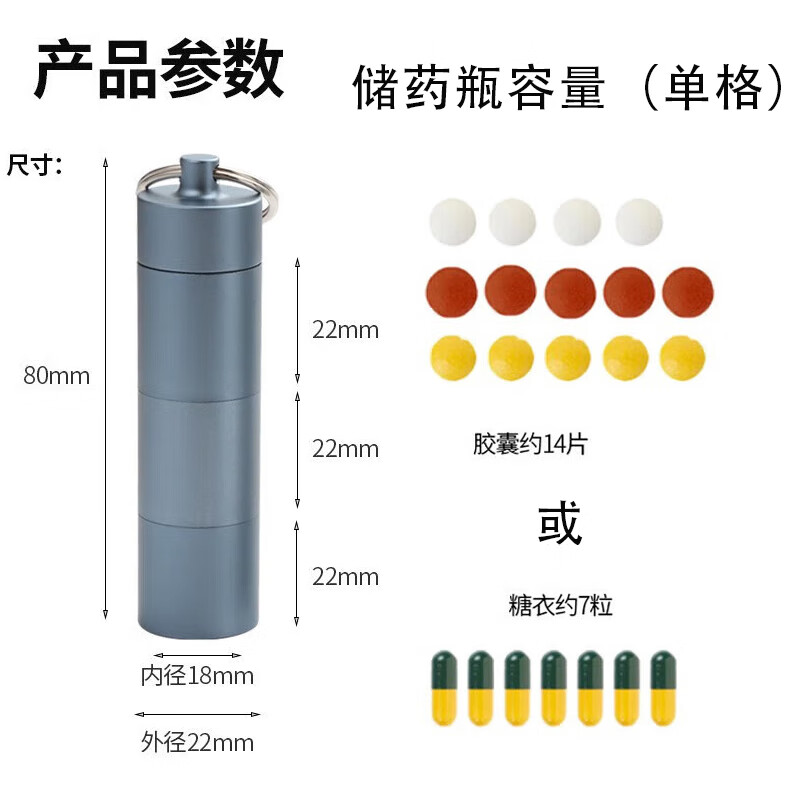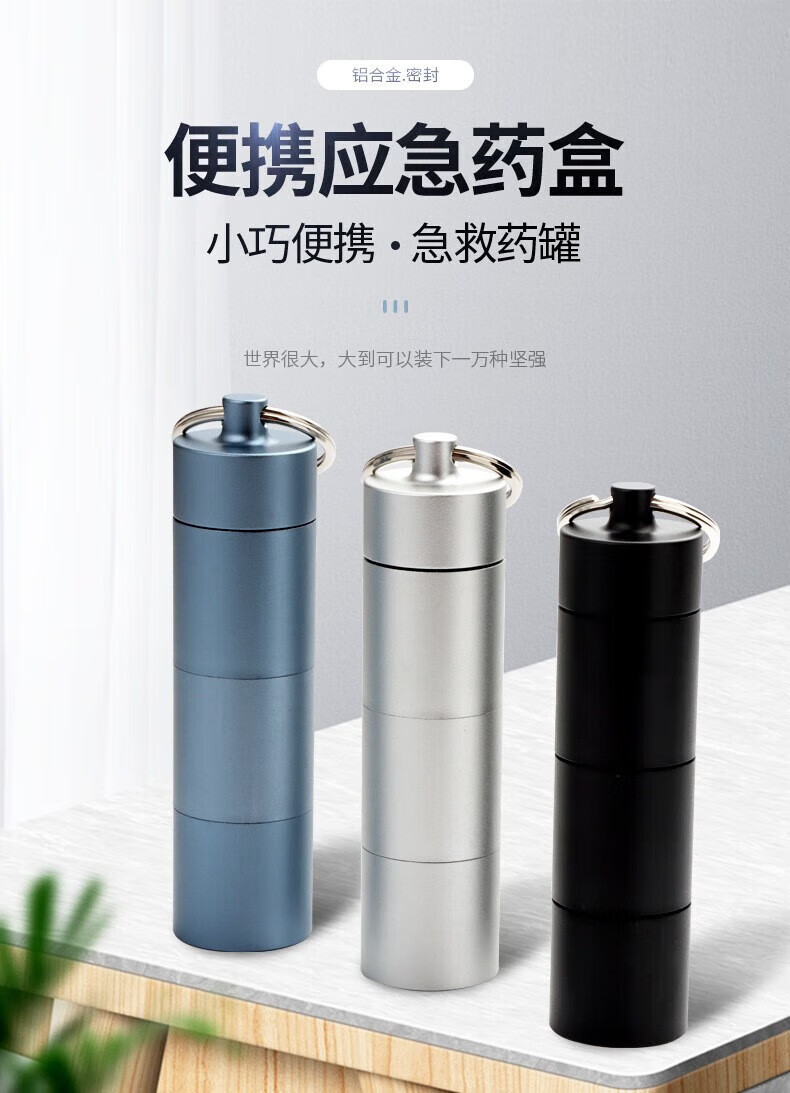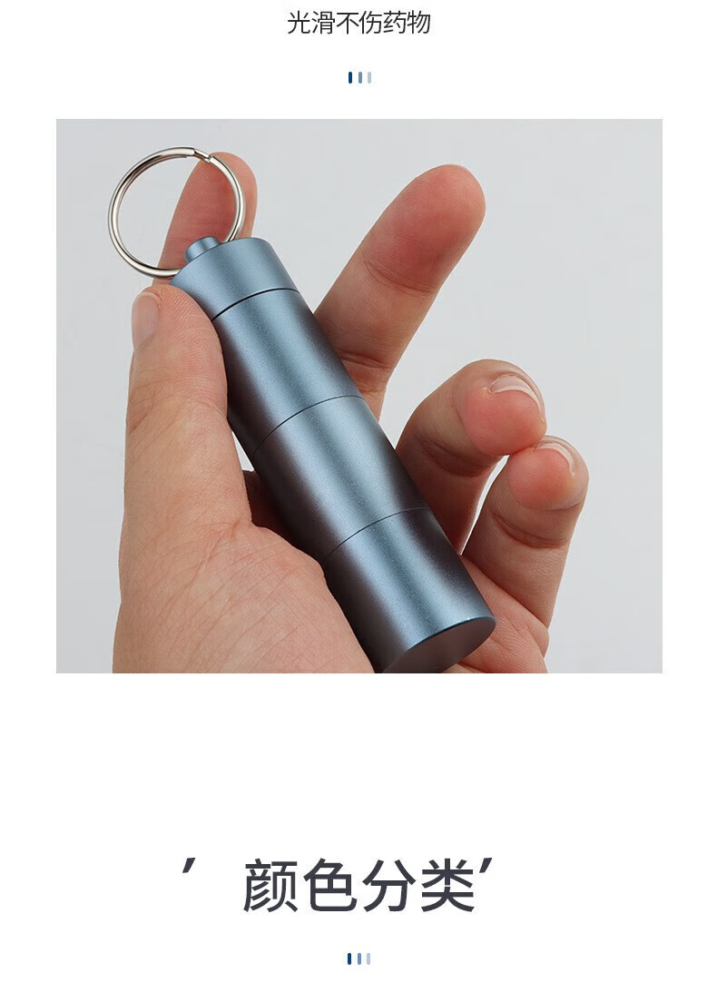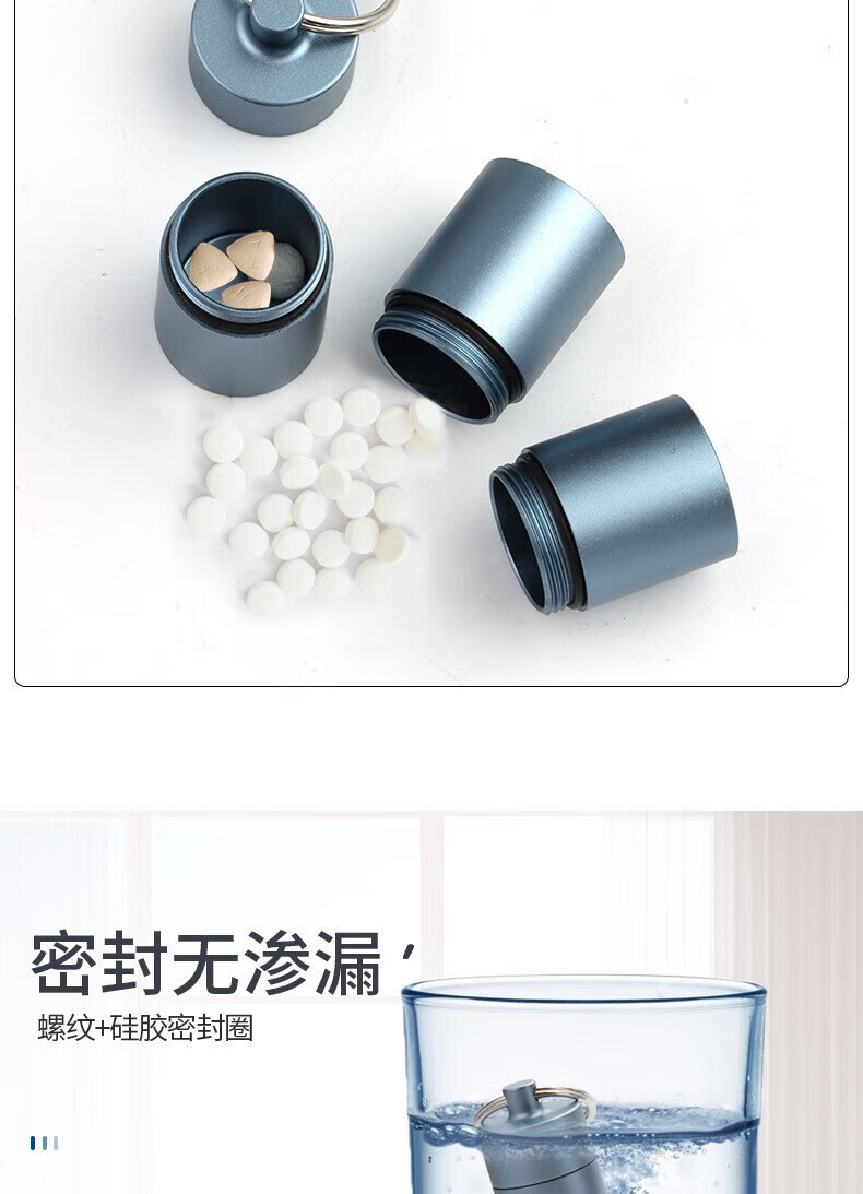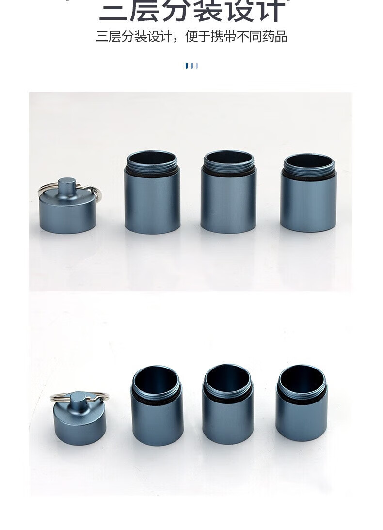 南啵丸随身便携式药瓶钥匙扣密封多层药片分装收纳盒老人急救防潮小药瓶 蓝色【小巧便携设计】