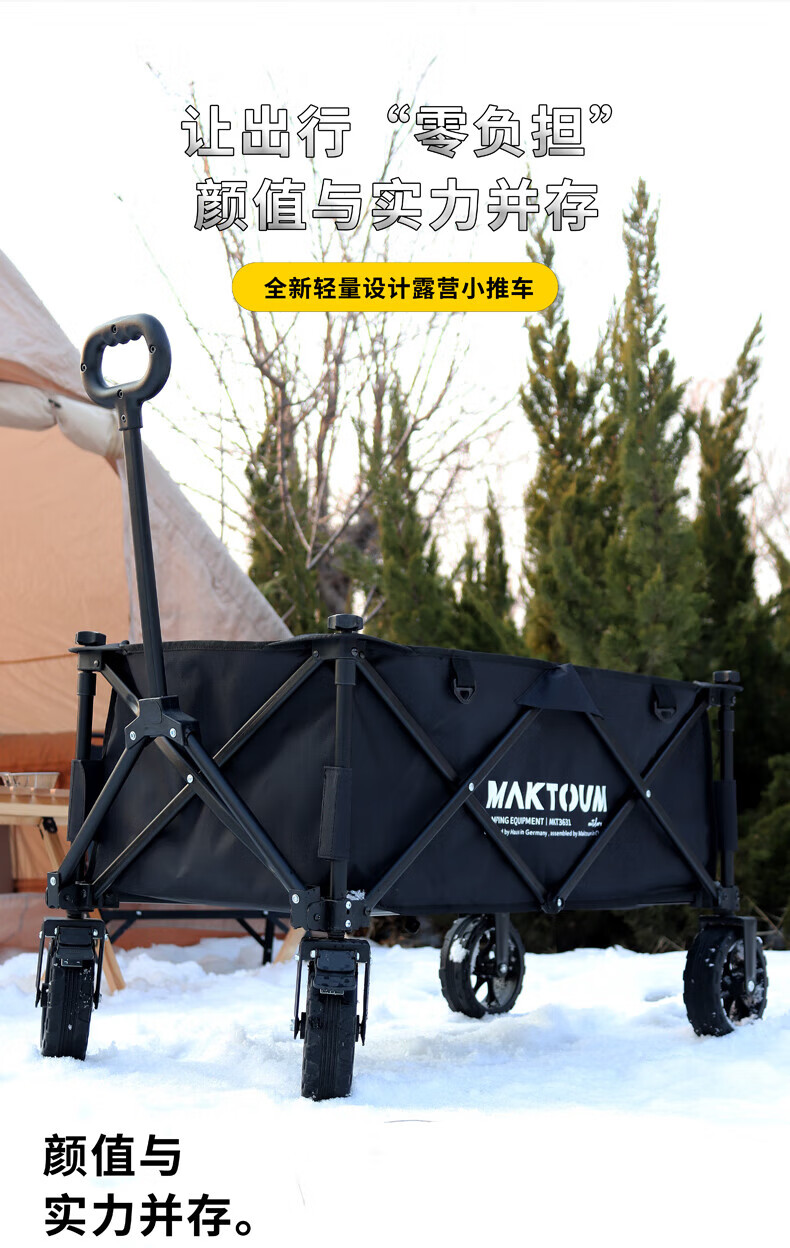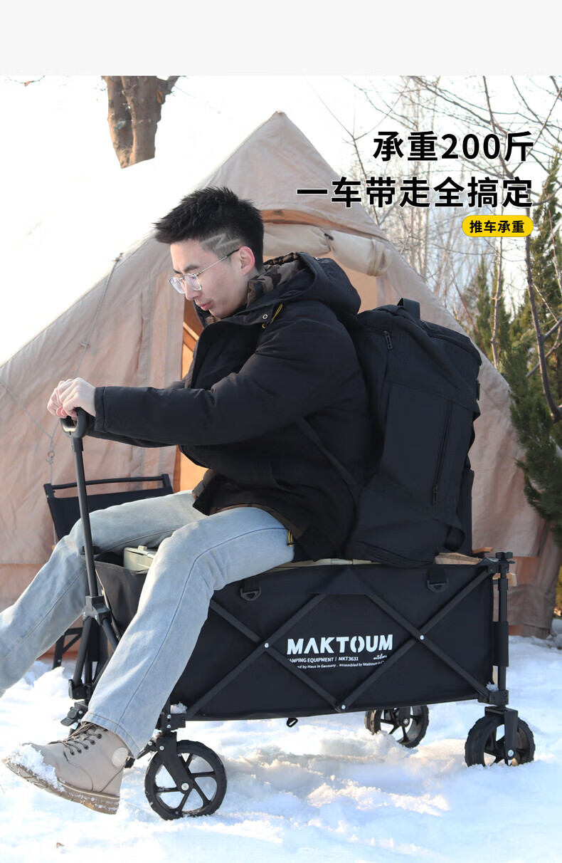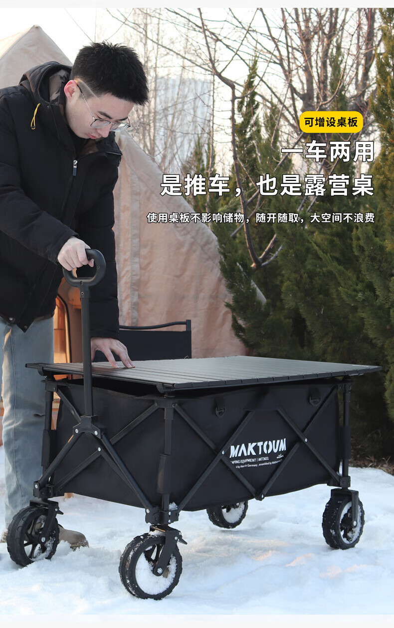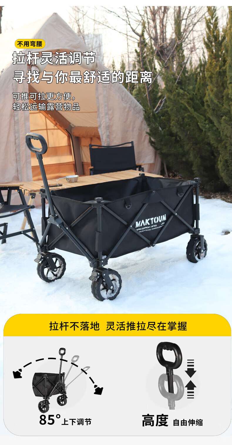 马科途公园款露营车户外野营野餐小拖车溜娃折叠手拉车拉货取快递买菜车 【公园款】小号黑色露营车 140L