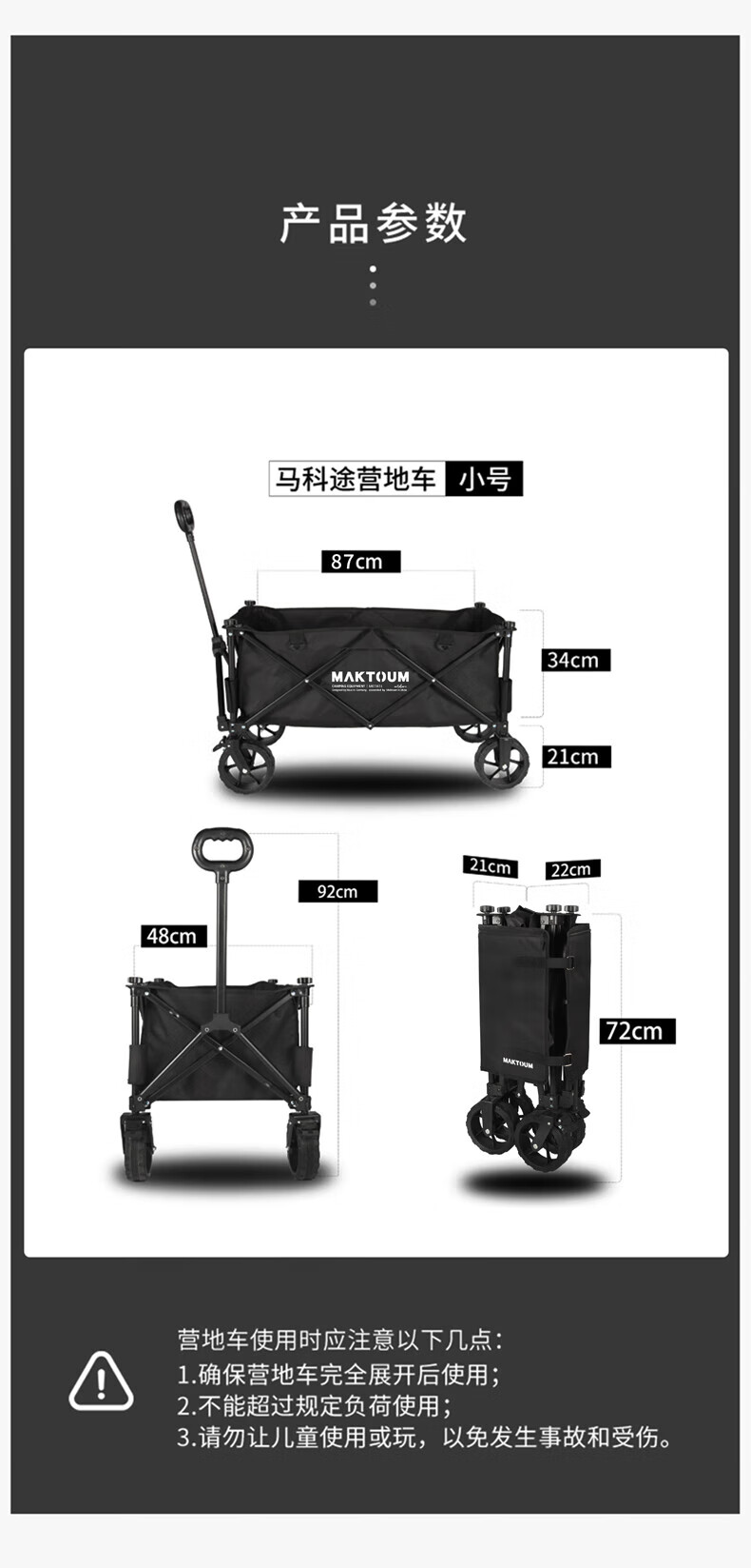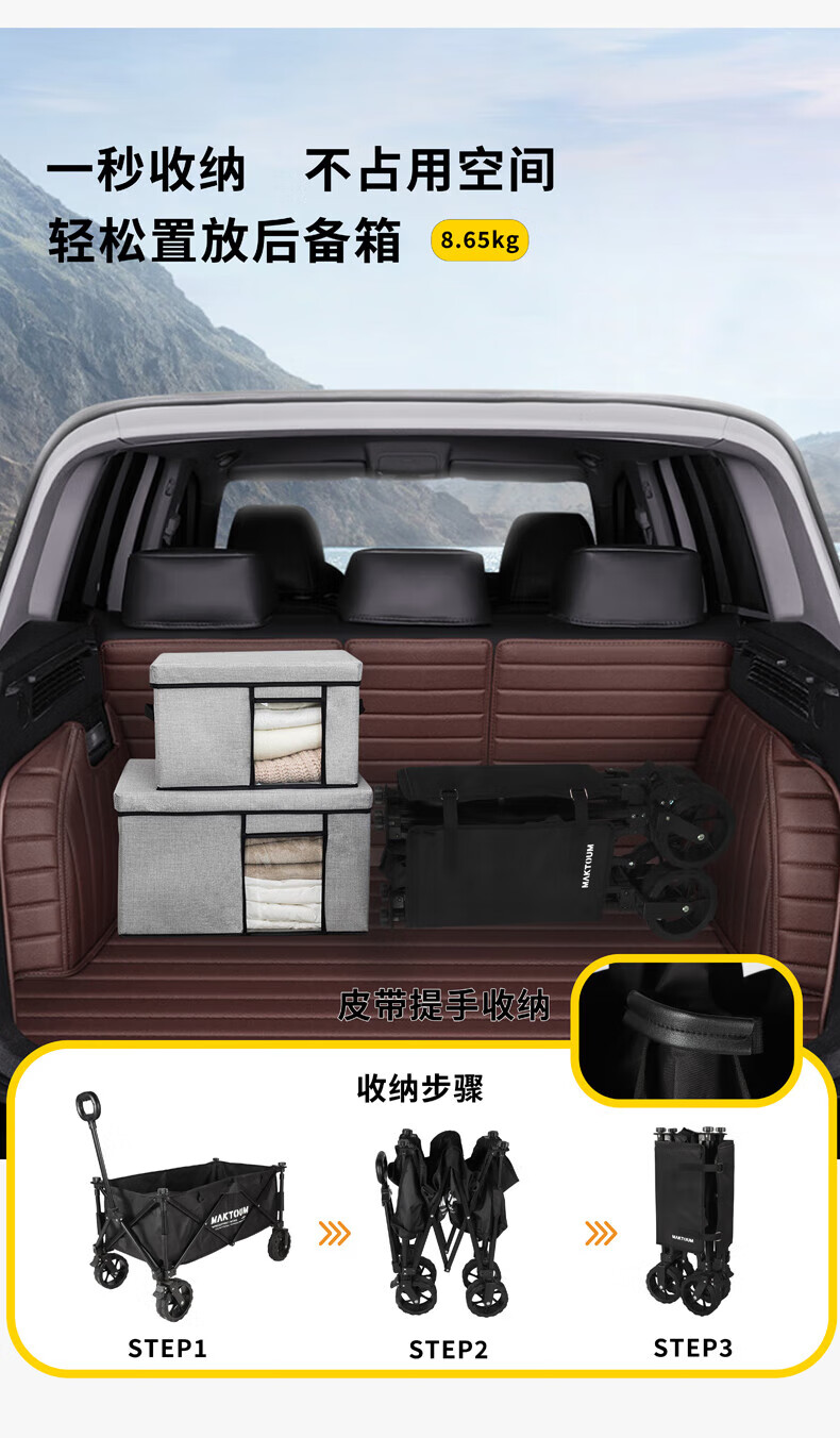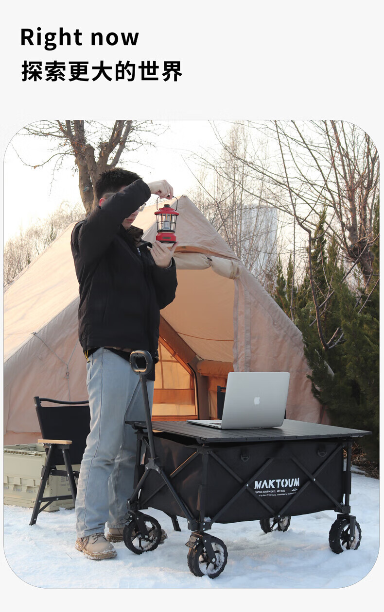 马科途公园款露营车户外野营野餐小拖车溜娃折叠手拉车拉货取快递买菜车 【公园款】小号黑色露营车 140L