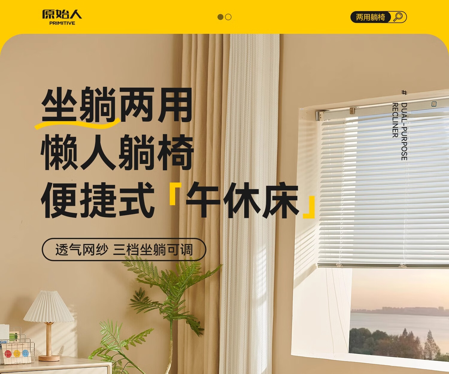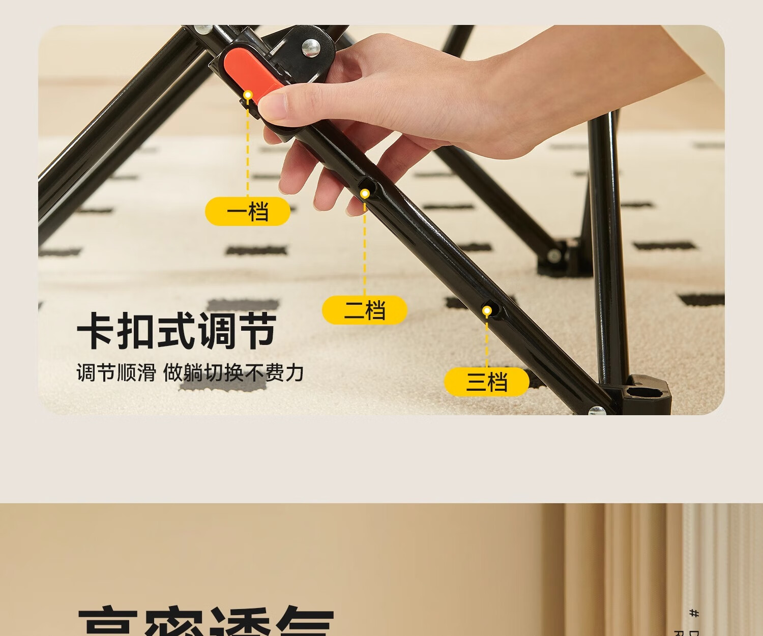原始人折叠躺椅露营便携折叠床单人床午休床办公室午睡午休神器医院陪护 卡其*2【三档可调 坐躺两用】