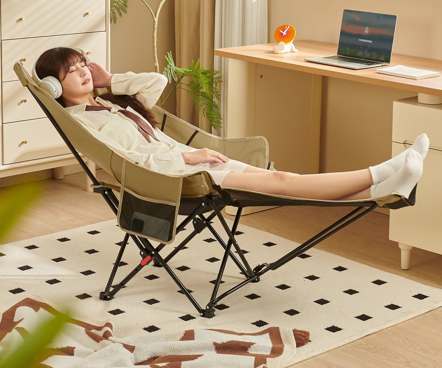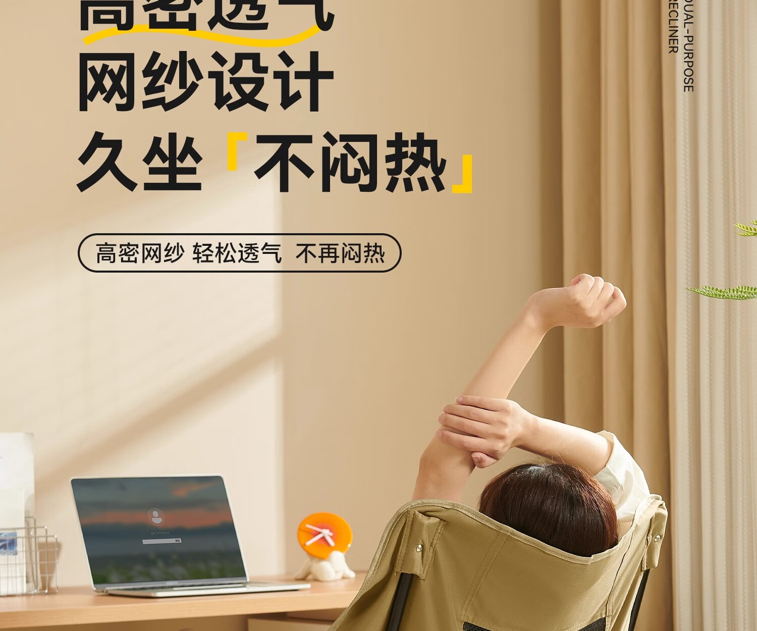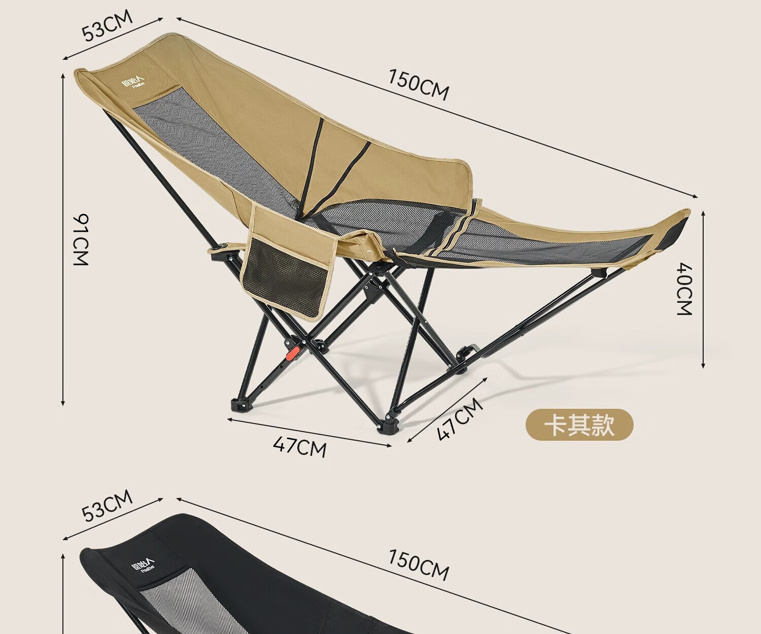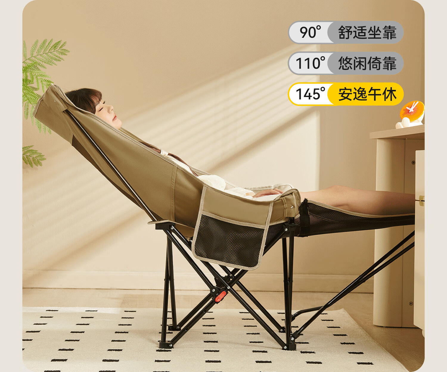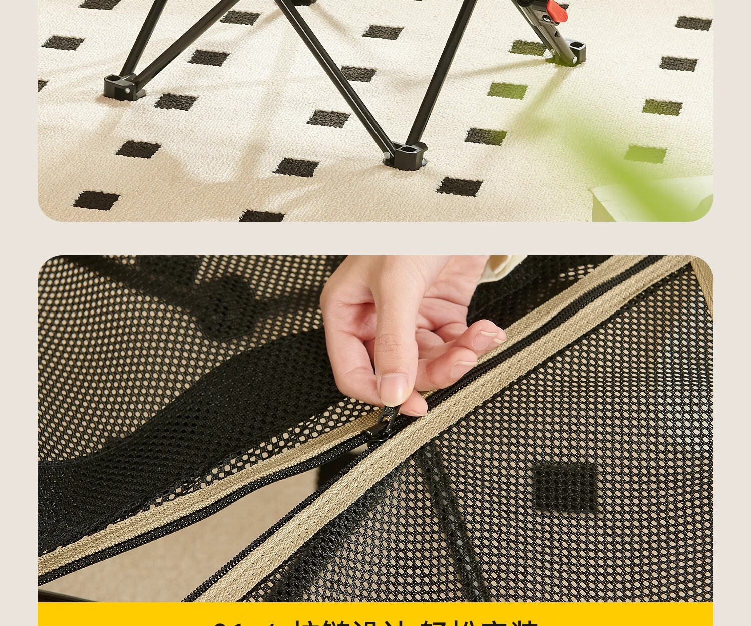 原始人露营便携躺椅折叠床单人床午休床办公室午睡躺椅午休神器医院陪护 卡其高背坐躺两用椅-透气网纱