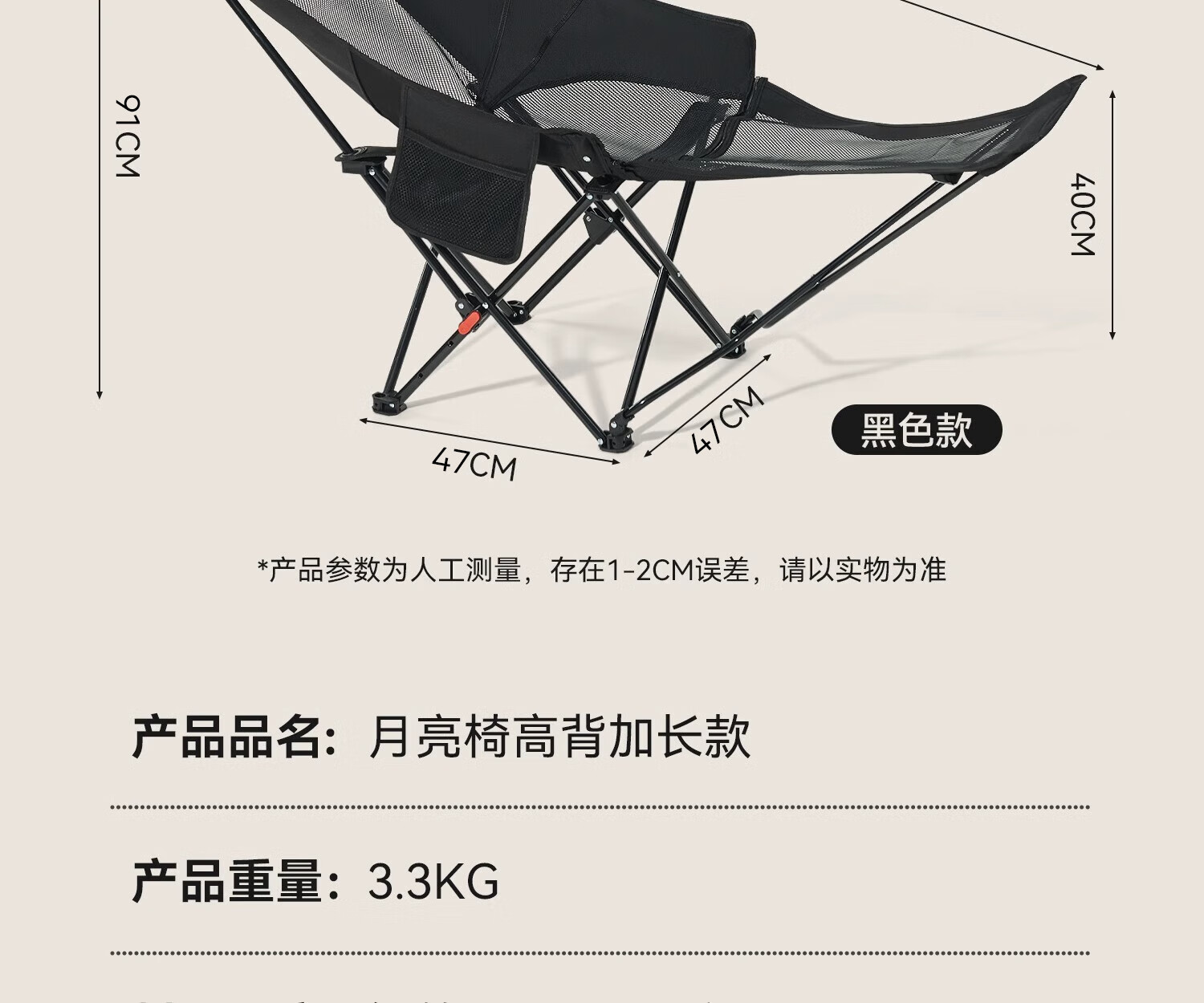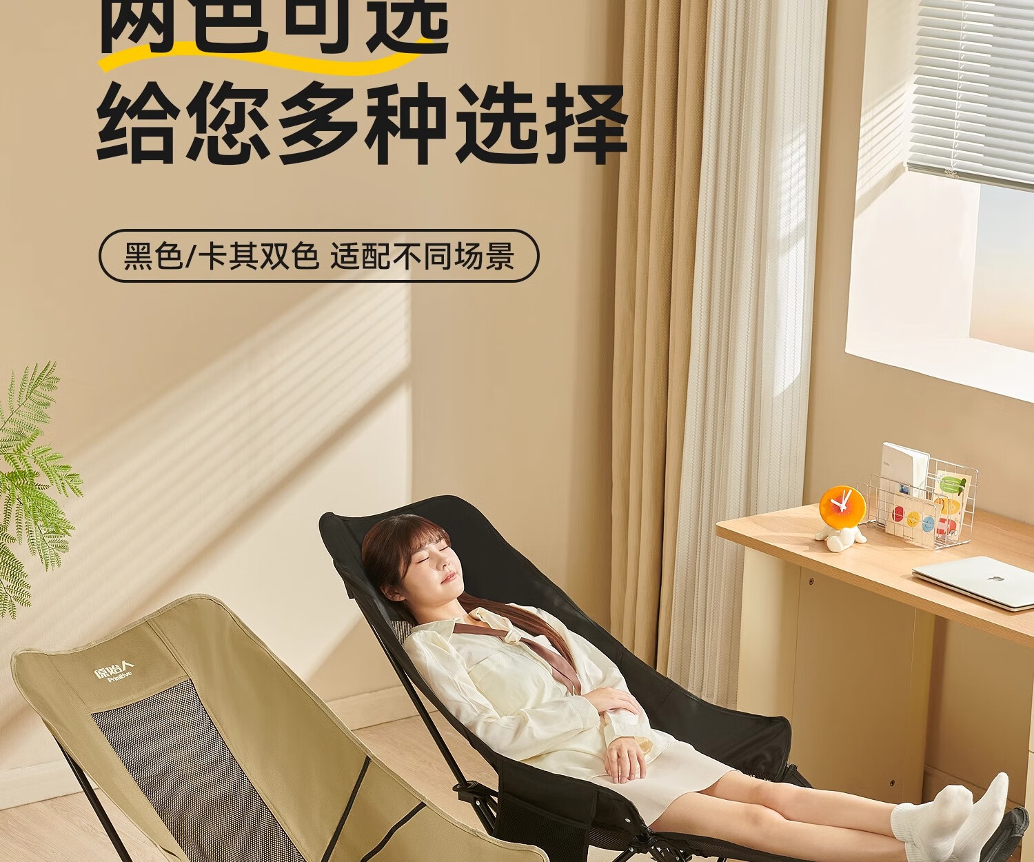 Naturehike挪客便携折叠月亮椅 户外露营休闲办公超轻铝合金钓鱼导演沙滩椅 黑色