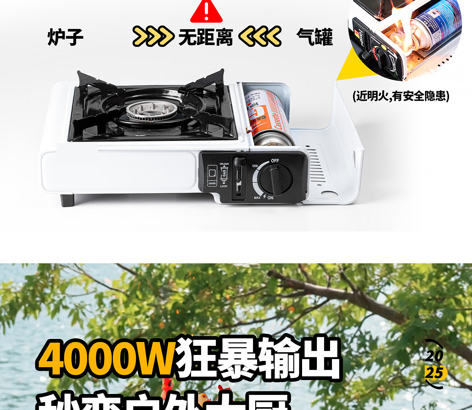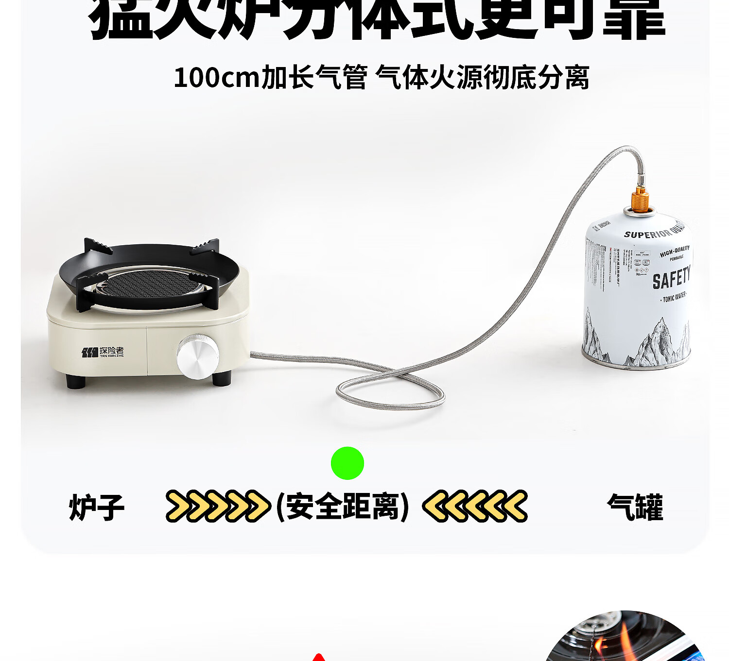 以前买了卡式炉一直怕安全问题不太敢用!感觉还是这种安全一点!气罐跟炉子分开的感觉更有安全感觉,用的挺不错的!火力够!煮火锅还是挺快的,户外实用,使用的非常便捷,非常满意的!