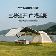 挪客ango自动帐篷铝杆款户外露营装备全套黑胶防晒自动速开家庭公园帐 琥珀黄/3人/带天幕/铝杆