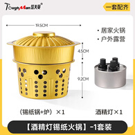 塔夫曼一次性小火锅酒精炉锡纸锅卡式炉户外露营便携式单人带盖锅具套装 【可燃约90分钟】1080ml单人小火锅1套【1-2人用】