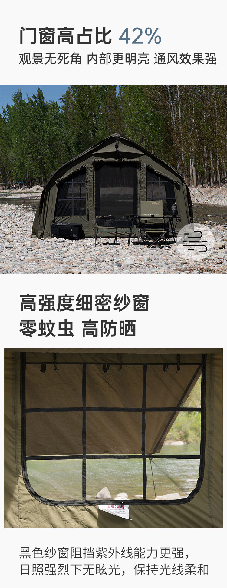 帐篷质量很好,分体式的也不重,一个人轻松搭建收纳。夏天搭也很凉快,网纱窗很多非常透气。客服小姐姐非常棒,有问必答,非常有耐心。充气帐篷还是得选大品牌