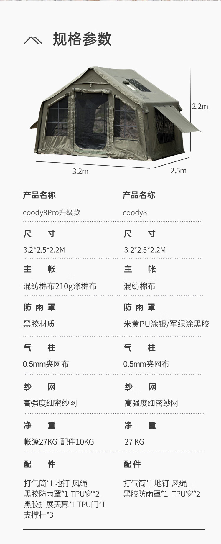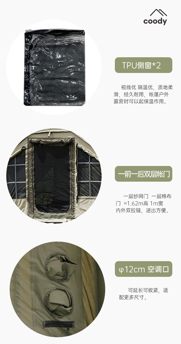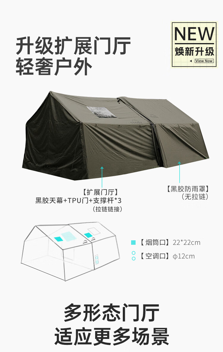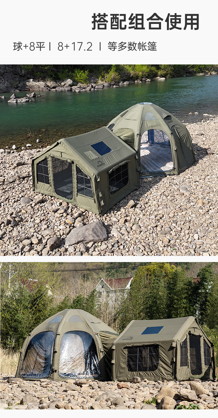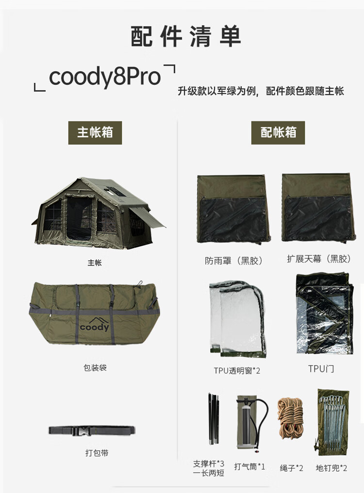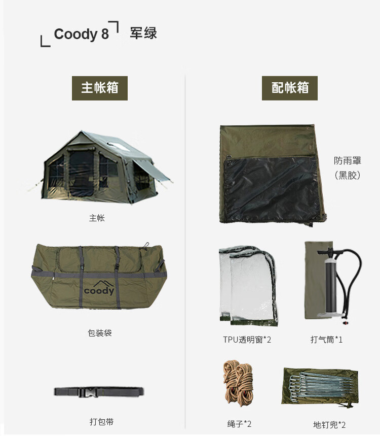 COODYCoody8平军旅风野营过夜充气帐篷户外露营3-4人黑胶天幕一室一厅 COODY八平帐篷 coody8㎡军绿色pro 含门厅