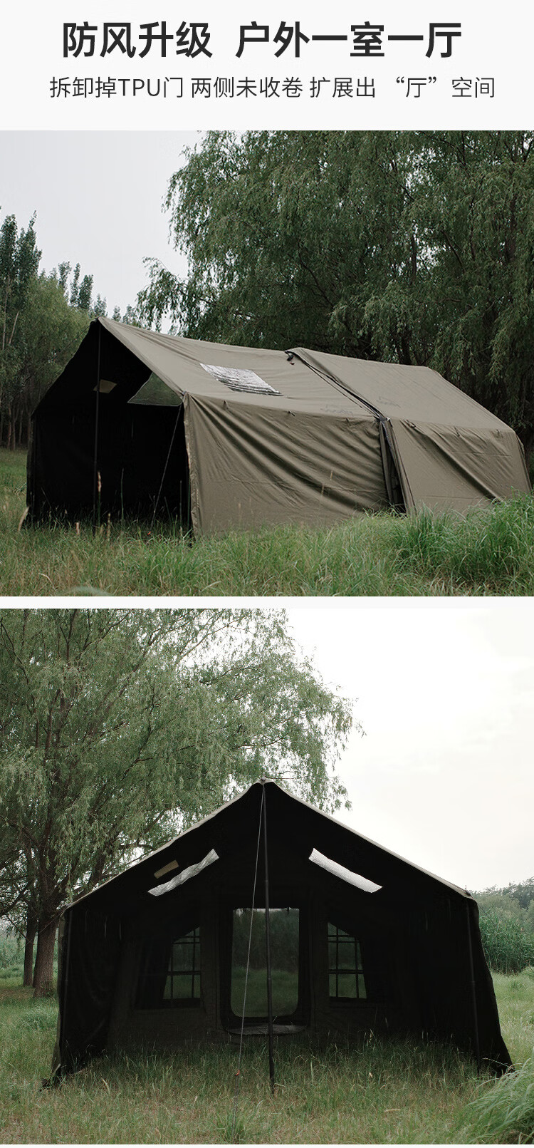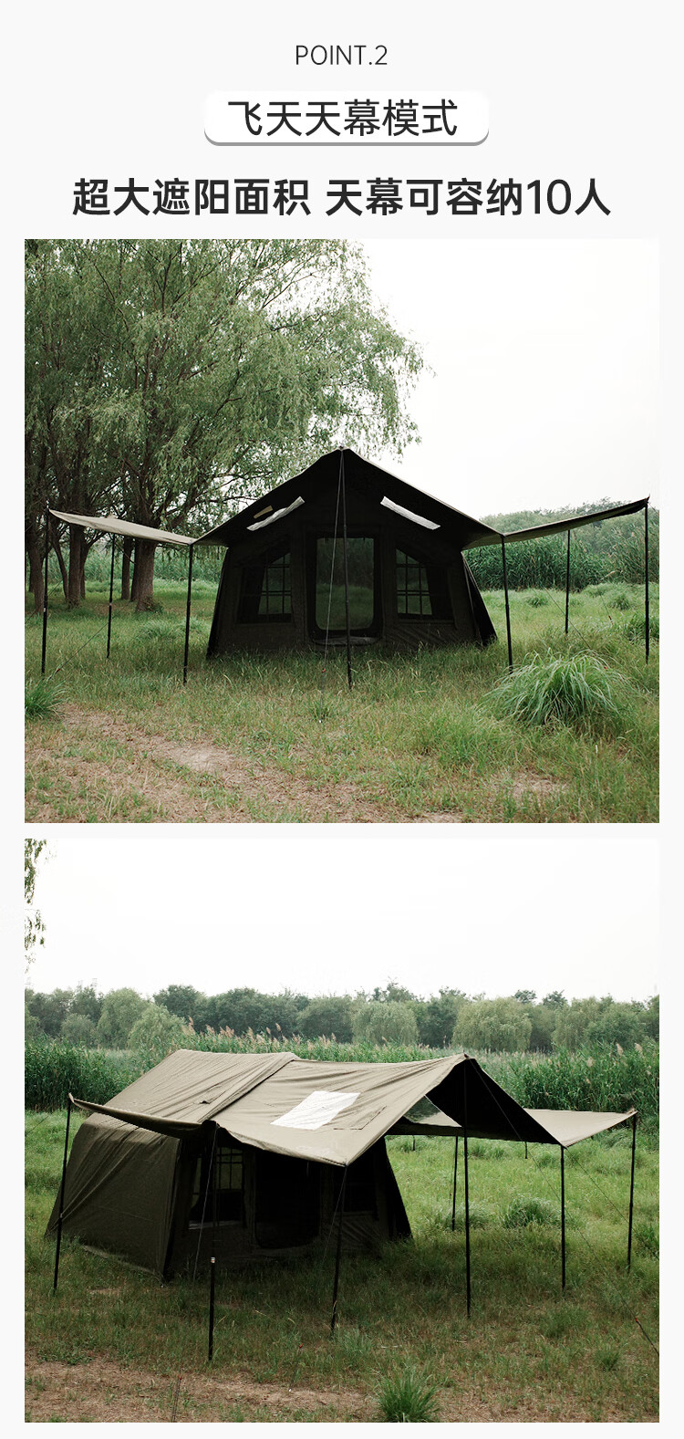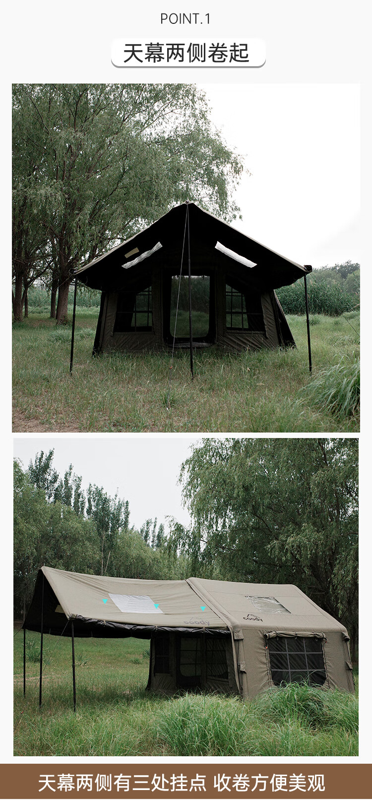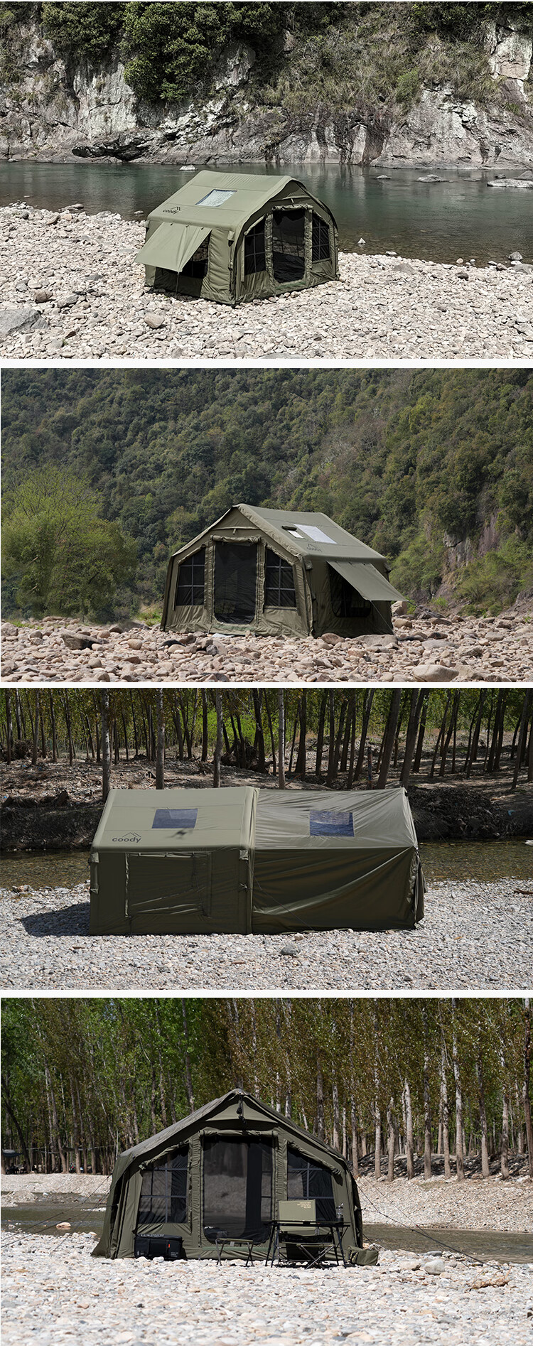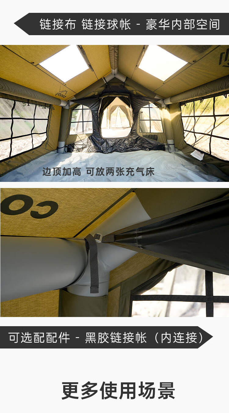 COODYCoody8平军旅风野营过夜充气帐篷户外露营3-4人黑胶天幕一室一厅 COODY八平帐篷 coody8㎡军绿色pro 含门厅