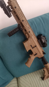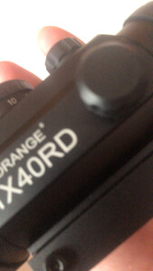 装在发射器上挺帅的,红点很清晰,就是绿点有点散光了