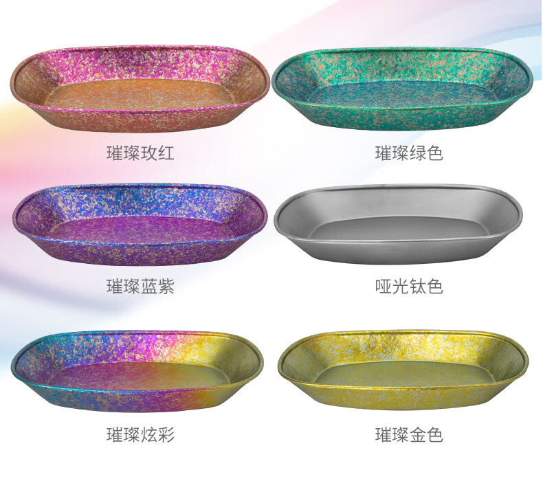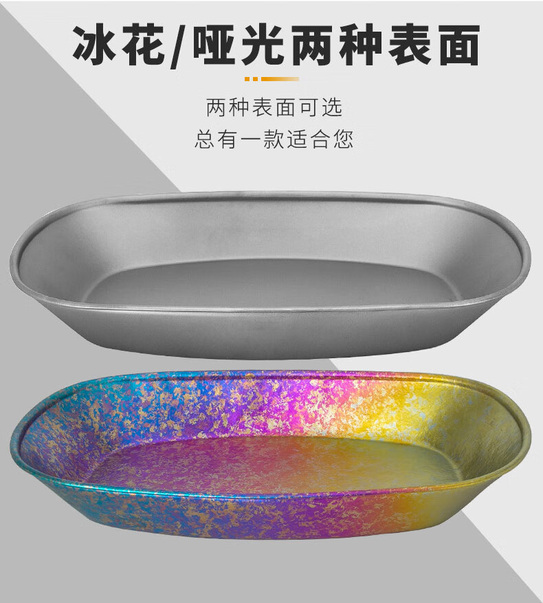 钛途纯钛鱼盘户外露营家用菜盘水果盘野餐小吃碟子椭圆盘餐具99.5% 纯钛鱼盘-冰花蓝边炫彩