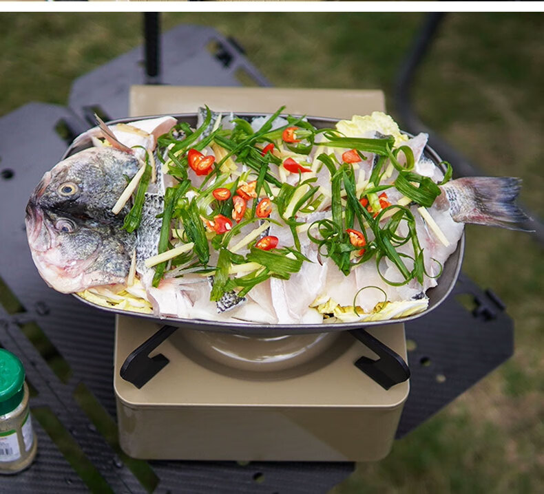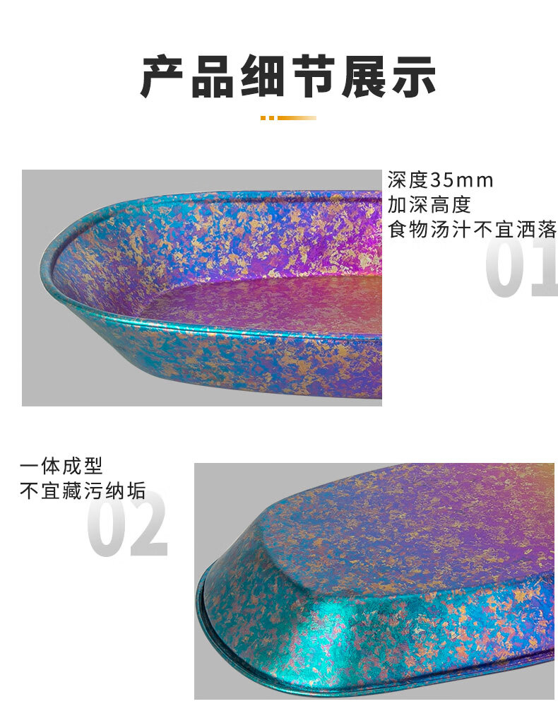 这款钛鱼盘设计精美,材质轻盈且坚固耐用,抗腐蚀性强。它表面干净,易于清洗,且外观现代感十足,用于摆放鱼肴十分得体,适用于各种用餐场合。