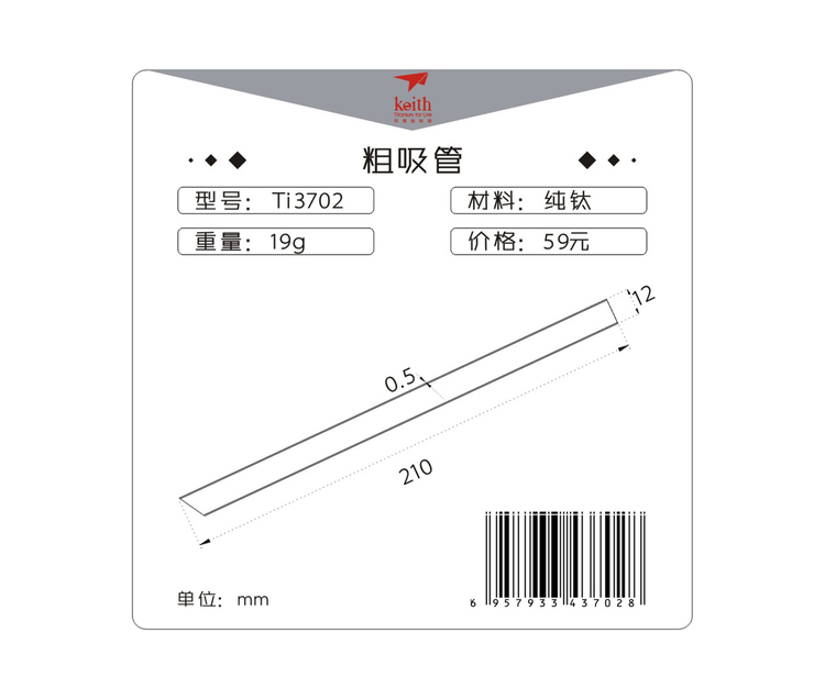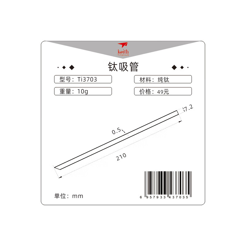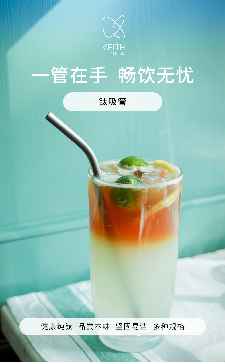铠斯(KEITH)钛吸管耐热耐高温耐用健康户外家用吸管果汁饮料吸管 钛吸管 Ti3702(宽口款)