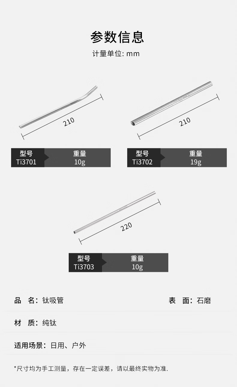钛途(TITO TITANIUM) 纯钛吸管99.5%钛合金饮料奶茶吸管家用户外野营餐具厨具便携 7*215mm钛吸管-哑光(直平口)