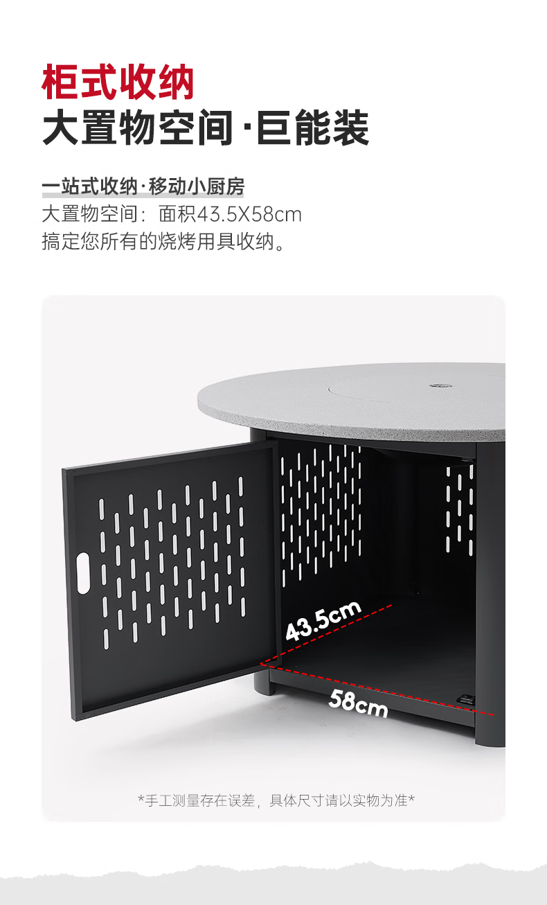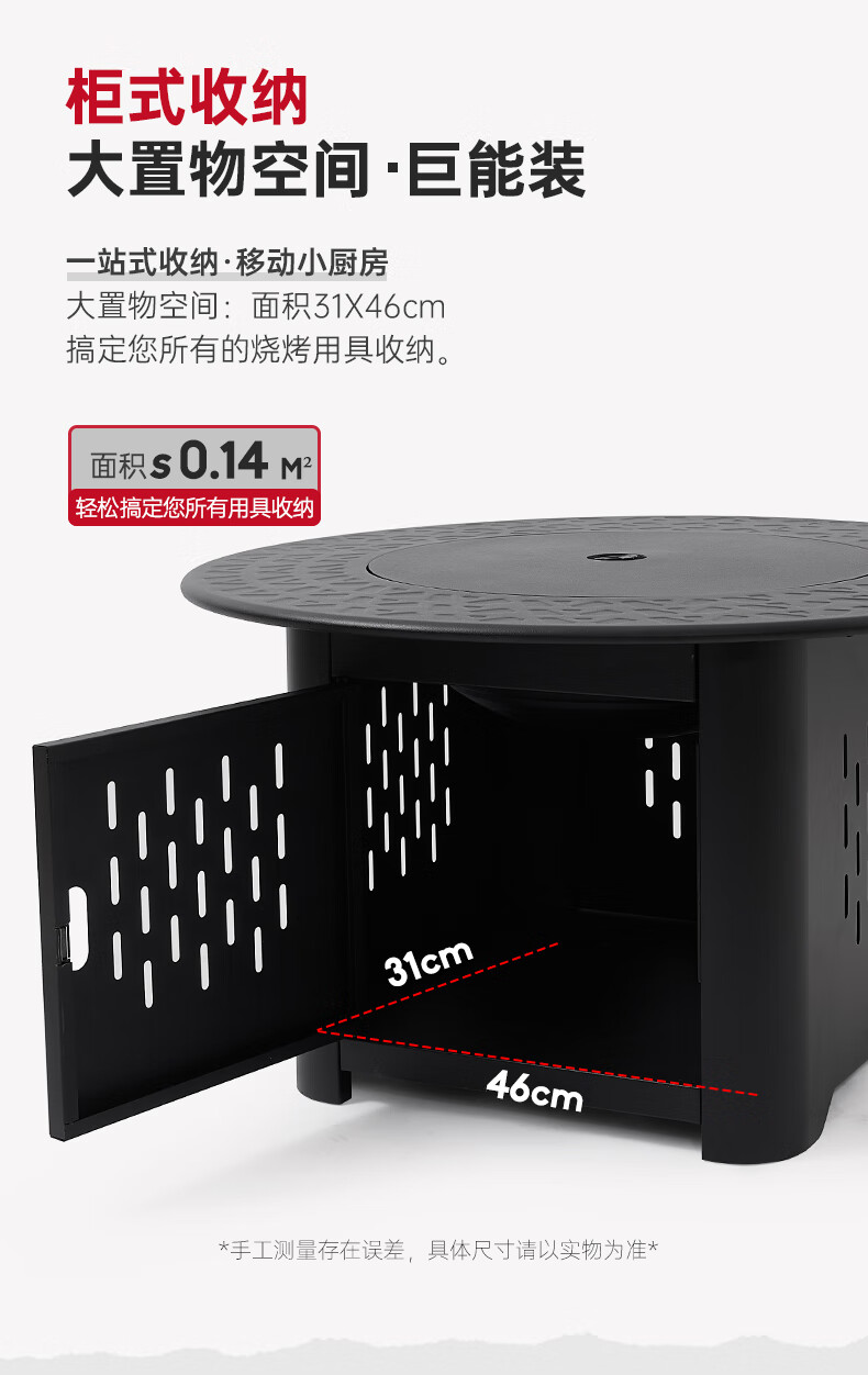 包装的很好,外观材质不错,性价比高,很结实,可以烧烤火锅,平时可以当桌子,喝茶聊天都不是问题,这点是我很满意的,柜子平时还能收纳东西