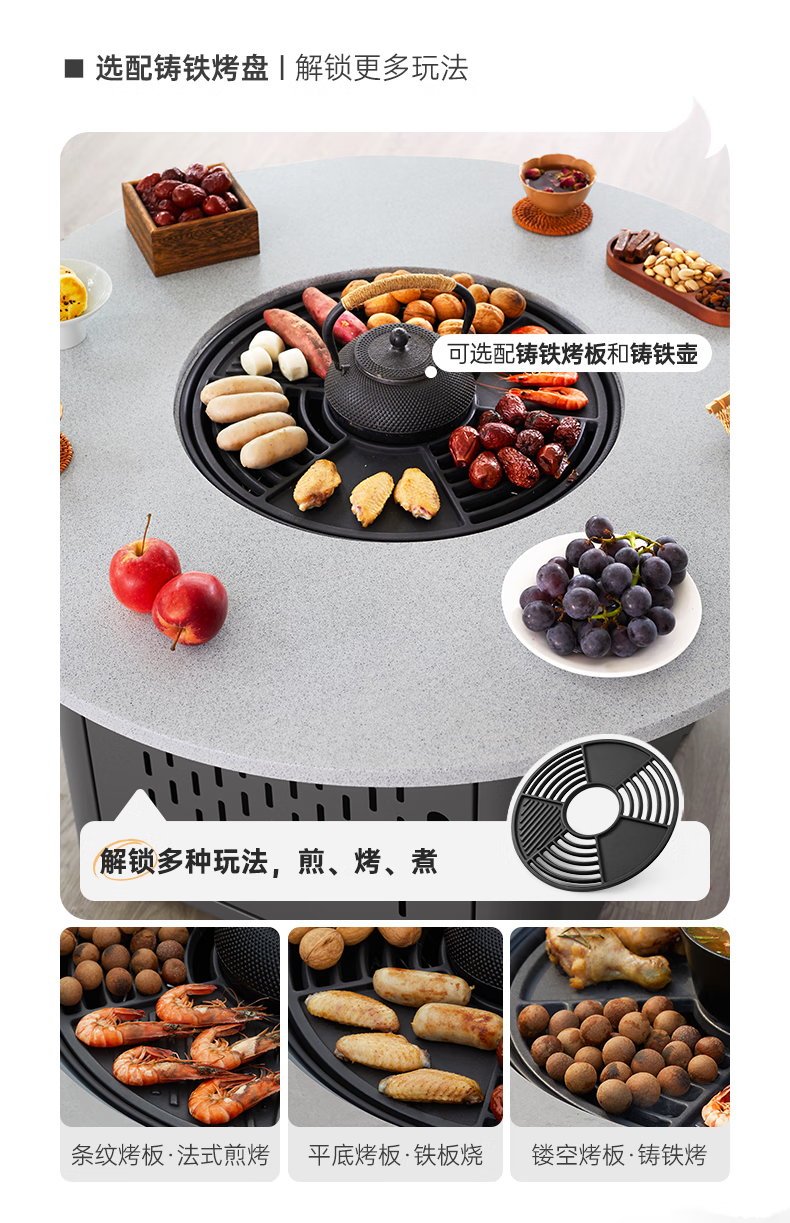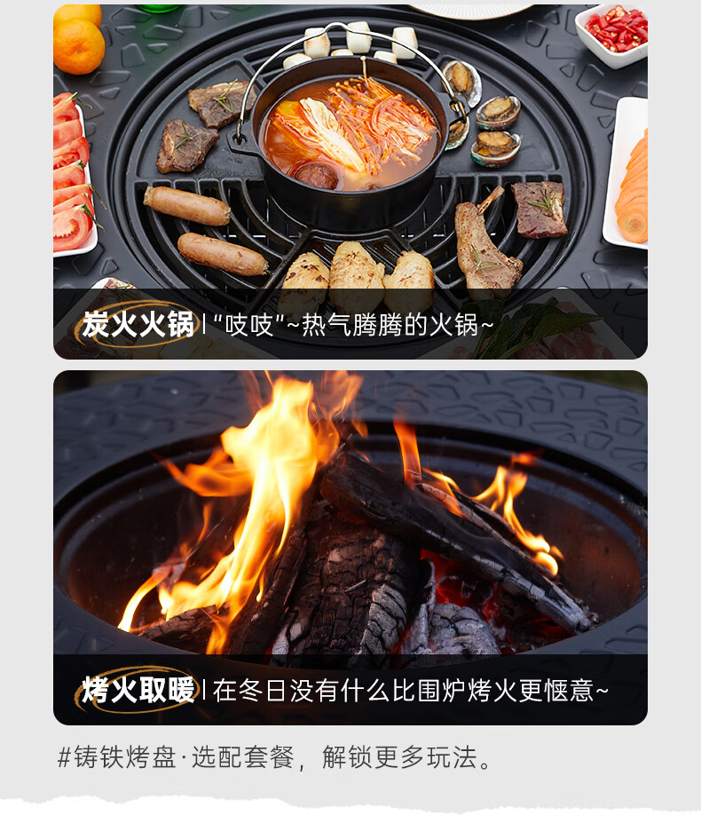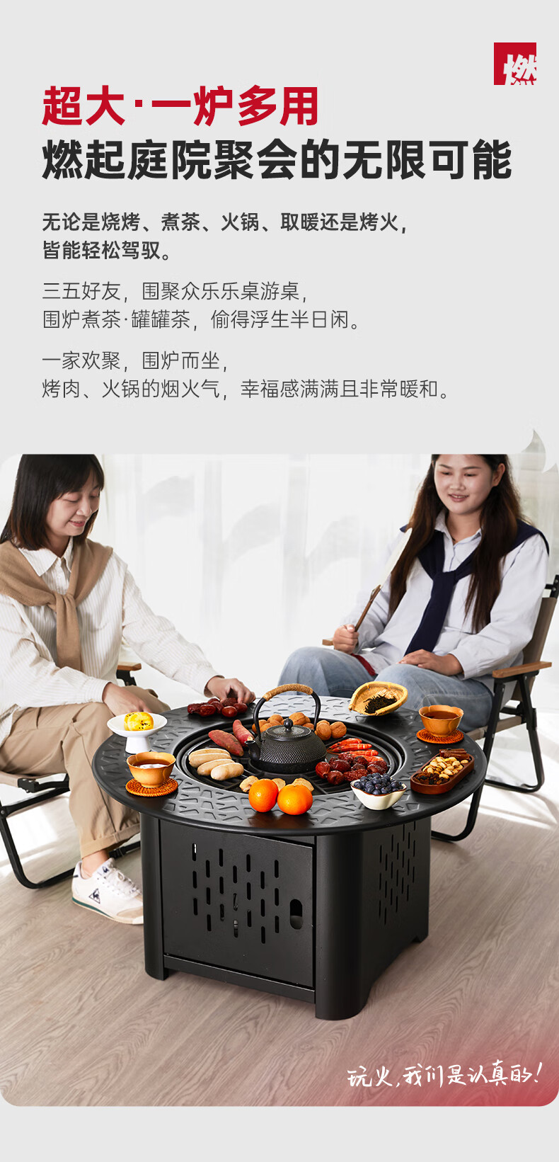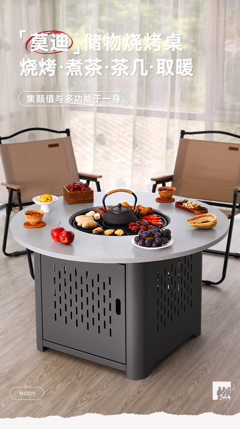 FIREPLUS围炉煮茶家用烧烤炉室内围炉烤火盆碳火炉桌户外套餐取暖炉烤火炉 烧烤储物桌-莫迪(桌面直径100CM)