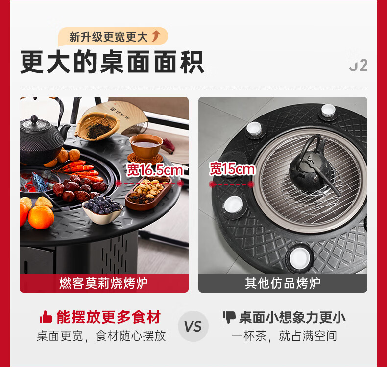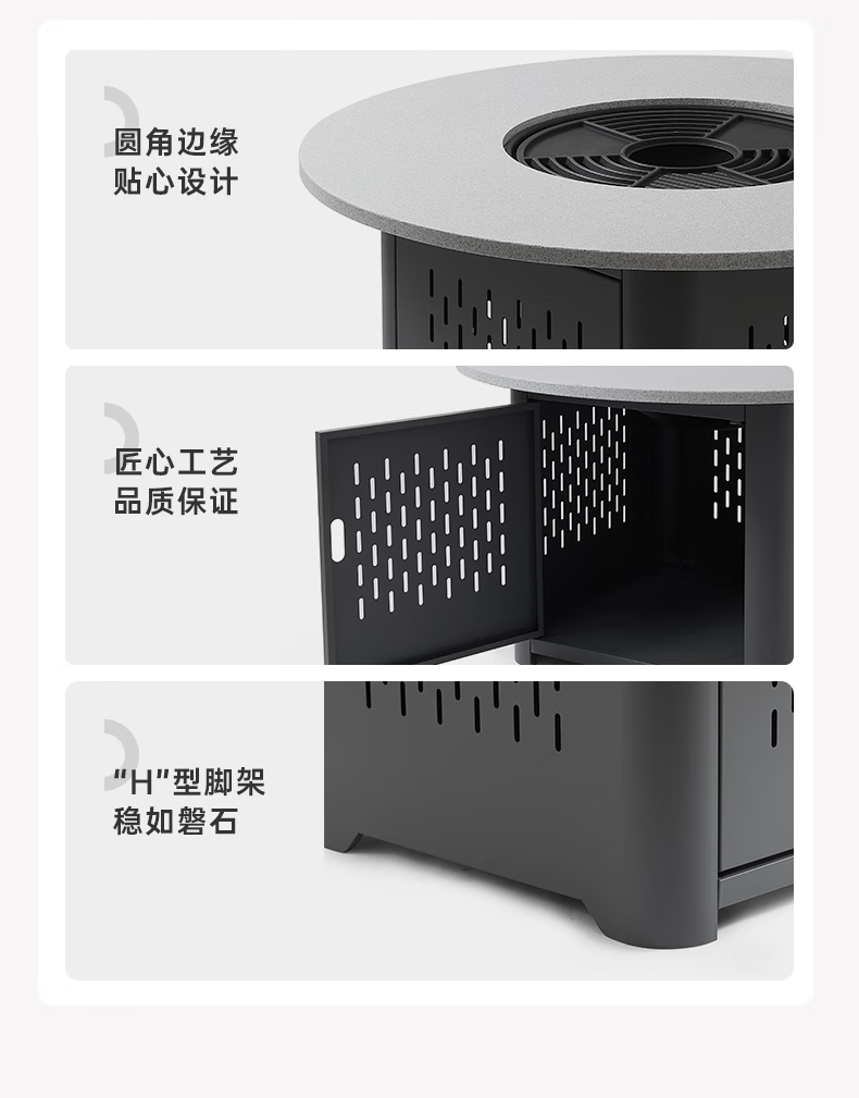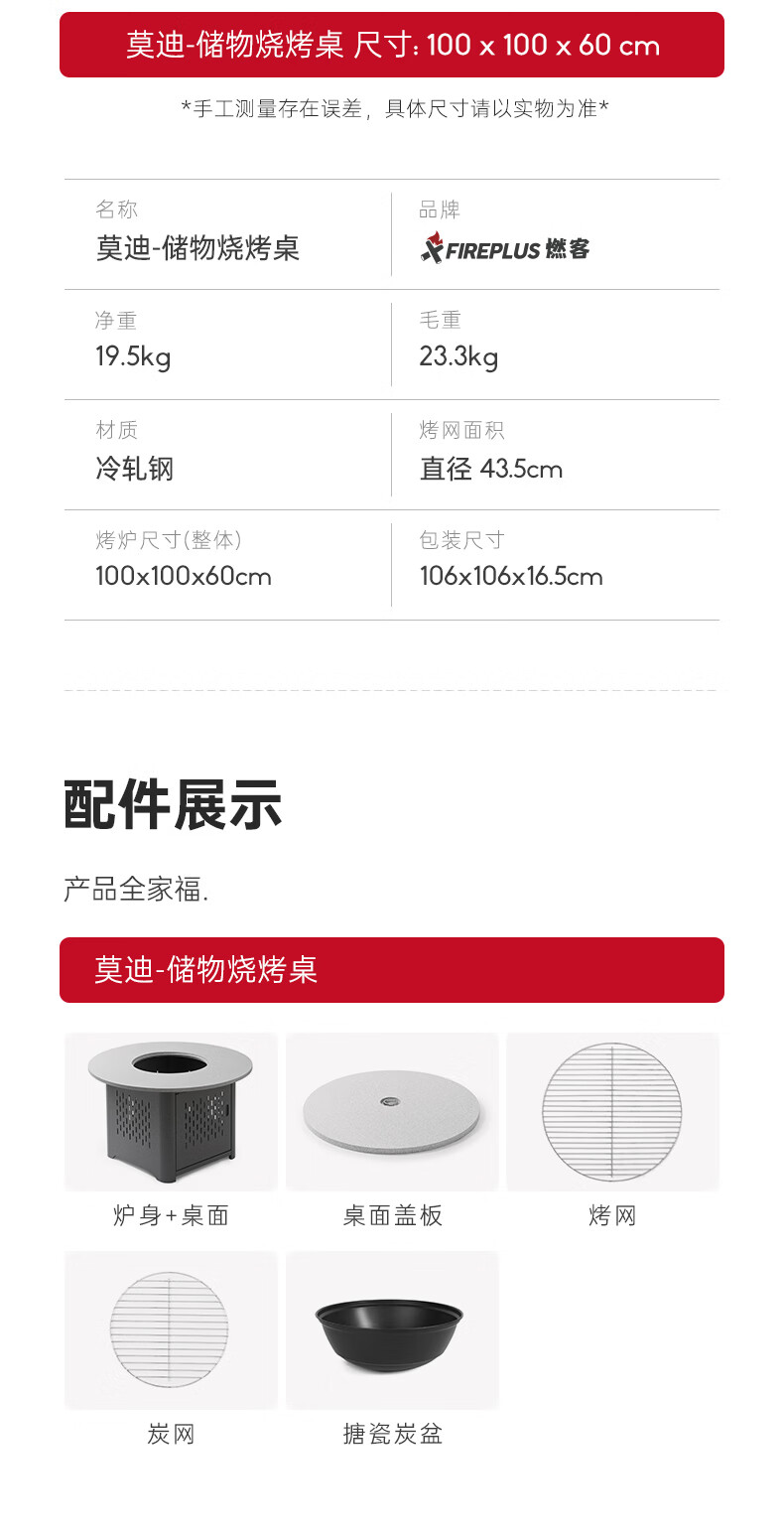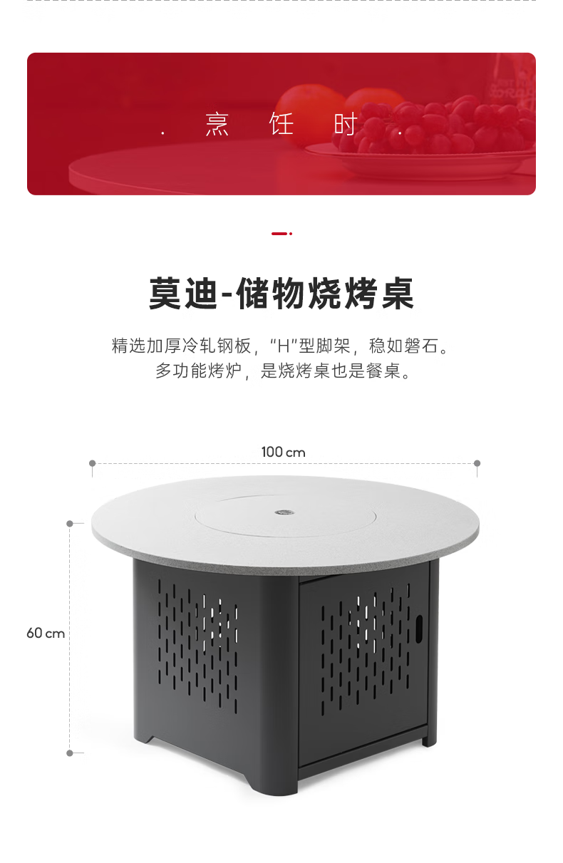 FIREPLUS围炉煮茶家用烧烤炉室内围炉烤火盆碳火炉桌户外套餐取暖炉烤火炉 烧烤储物桌-莫迪(桌面直径100CM)