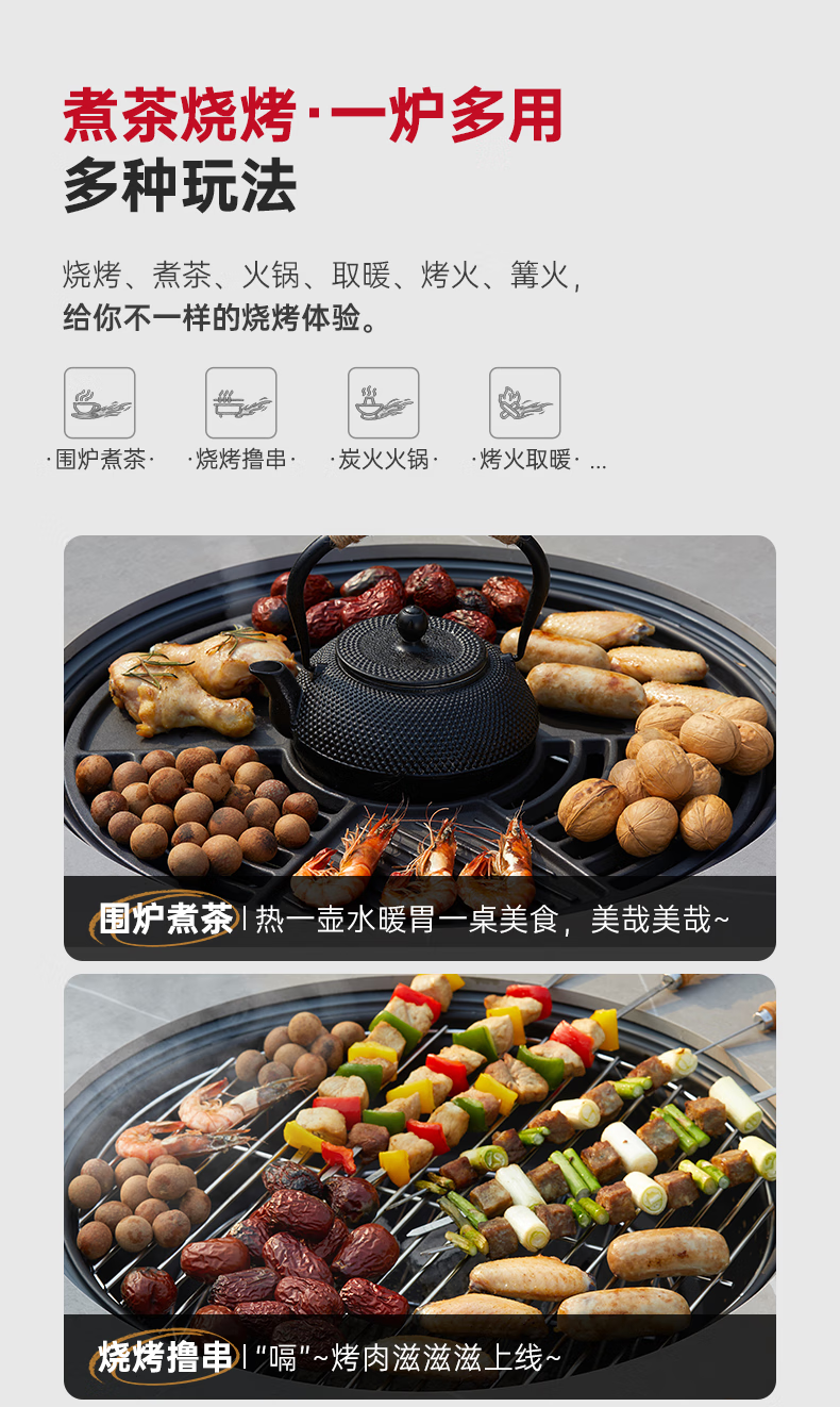 探险者探险者围炉煮茶套装电碳两用围炉桌烧烤煮茶一体烤火炉家用围聚煮 [60cm]电碳两用围炉桌