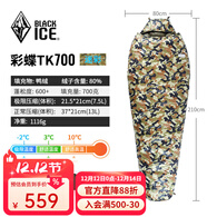黑冰25春夏新款【彩蝶TK鸭绒木乃伊式羽绒睡袋】户外露营防风成人睡袋 TK700-迷彩 均码