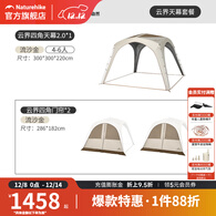 挪客铝杆拉链款云界四角2.0速开天幕户外露营大空间钛黑胶防晒遮阳棚 三件套-半开套餐