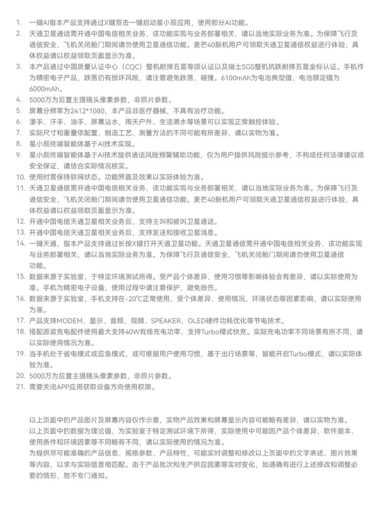 AI大模型,卫星通话,轻薄,高频PWM调光,防水防尘,红外遥控,大底主摄