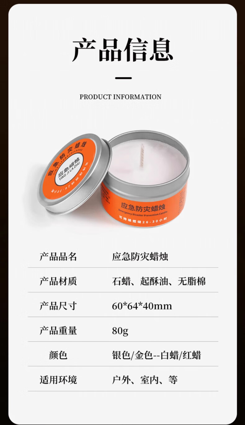 喜欢😍,他家的东西真不错,买来备用的,没想到还挺实用。蜡烛燃烧时间长,光线柔和,适合应急用。包装也挺精致,送的小配件很贴心。放在家里很安心,关键时候能派上用场。已经推荐给朋友了。