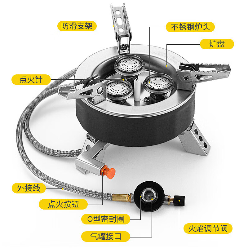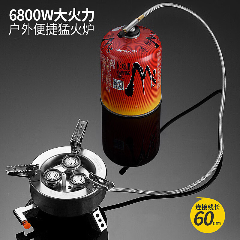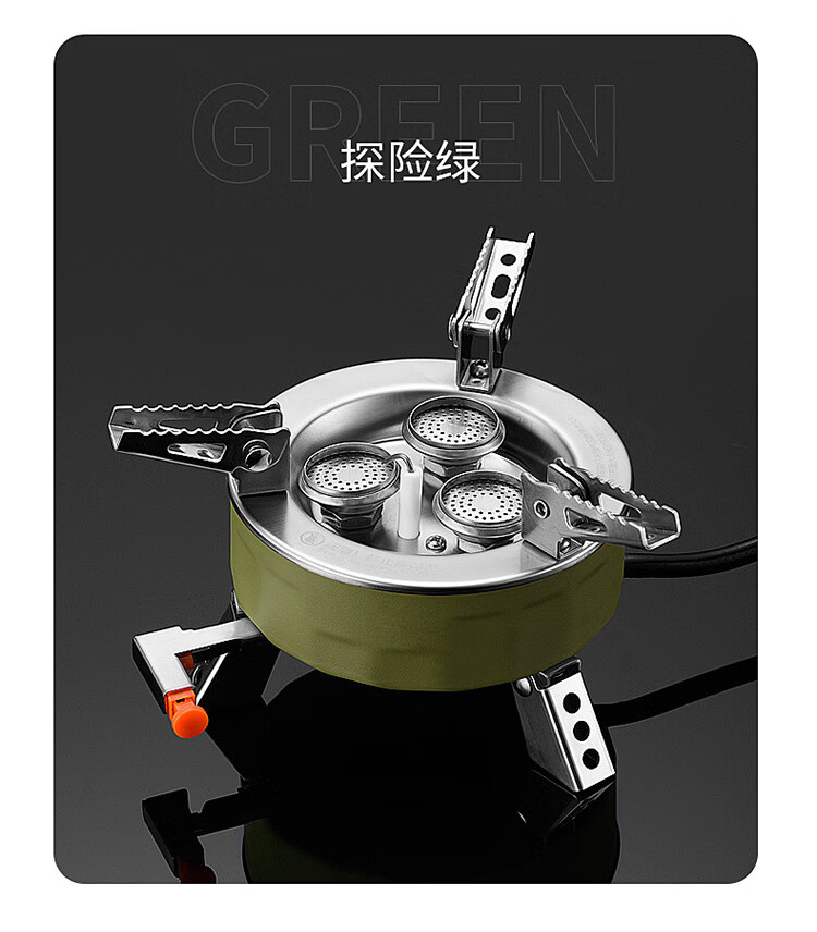 户外五星猛火炉七星灶三头炉露营便携式炉具瓦斯高山液化气燃气炉 6800瓦 探险绿 带转换接头