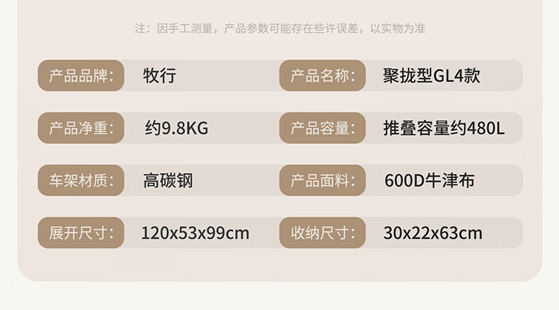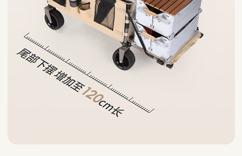 牧行带桌板露营车折叠聚拢型推车户外拉车摆摊桌车GL4 480L 卡其+推杆-省力便捷升级