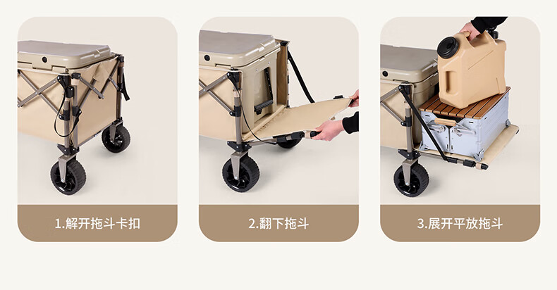这款露营车简直太实用了!超大容量轻松装下帐篷、食材和装备,万向轮顺滑省力,崎岖山路也能拉。折叠后不占空间,材质扎实耐用,性价比超高,自驾野营必备神器,全家出游轻松搞定!