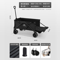 牧行露营车户外折叠小推车聚拢型带桌板餐车便携拖车GL1 200L 曜石黑-尾部扩容-聚拢型推车