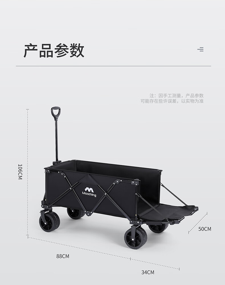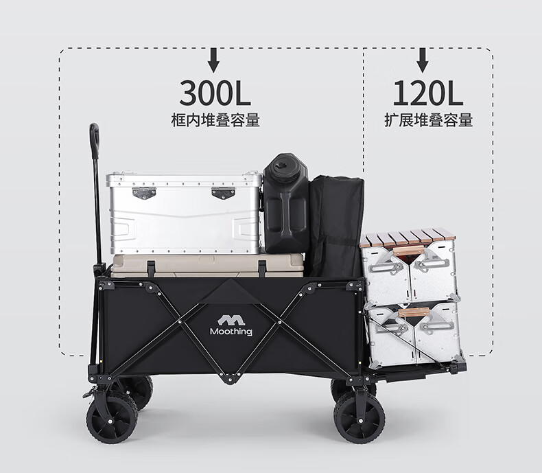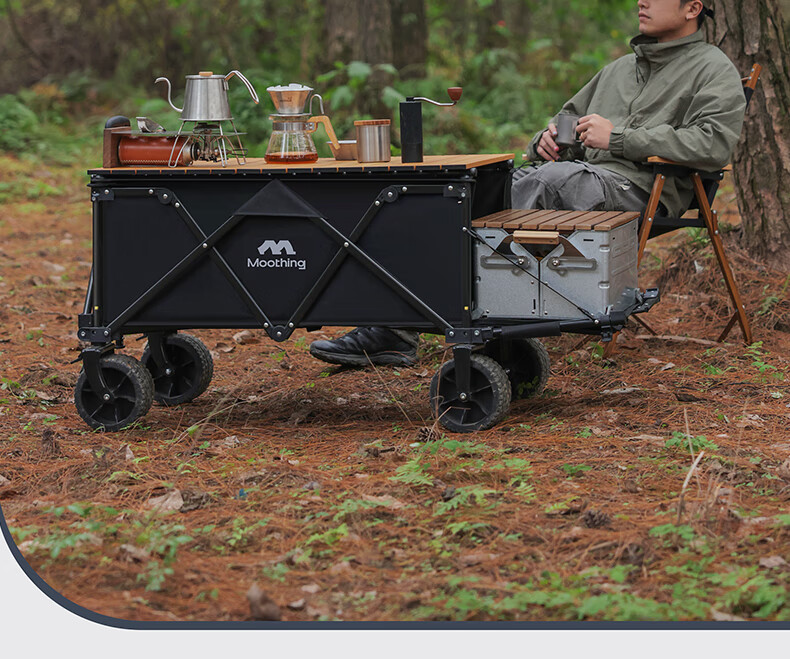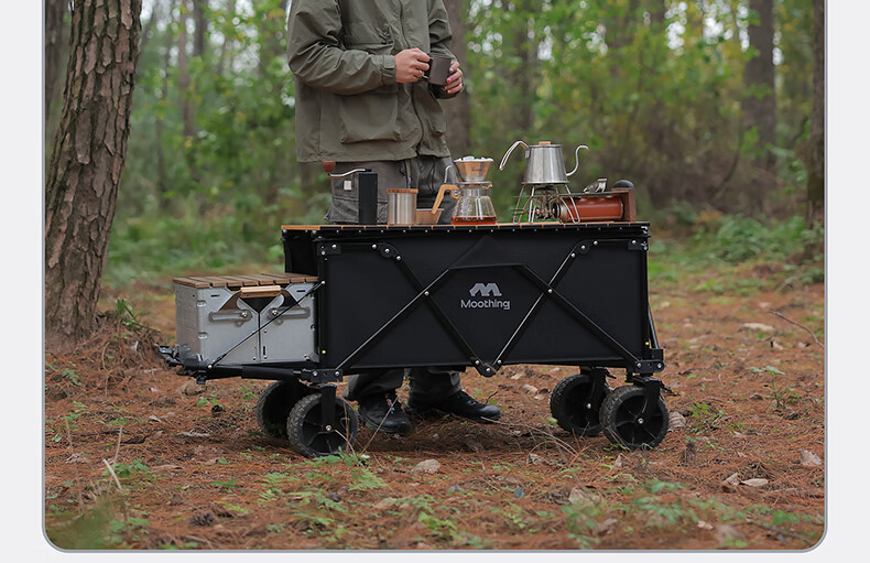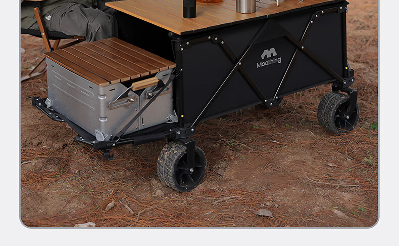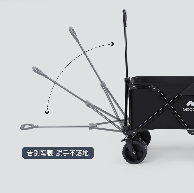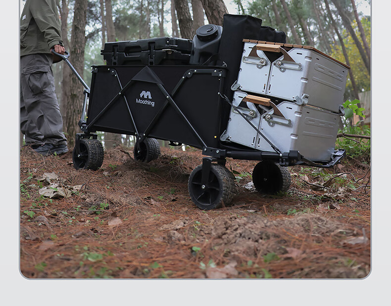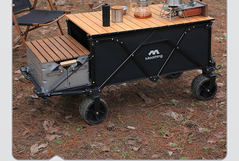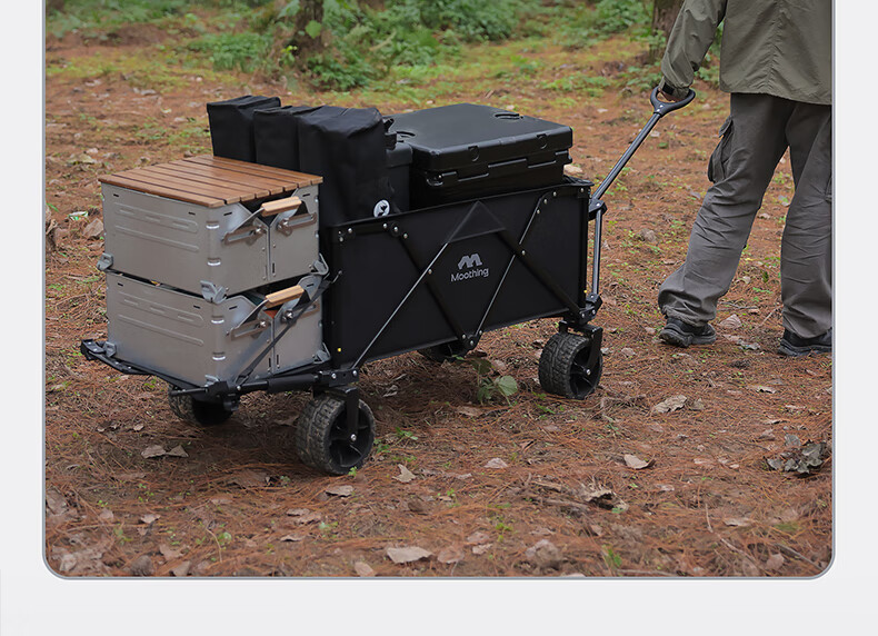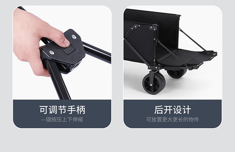 牧行带桌板露营车折叠聚拢型推车户外拉车摆摊桌车GL4 480L 黑色+推杆-省力便捷升级