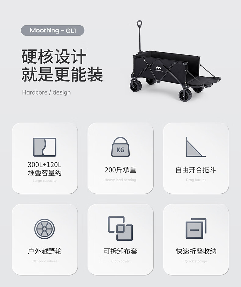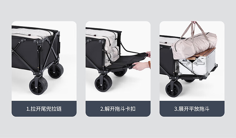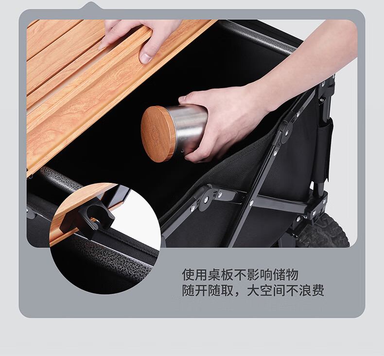 牧行户外聚拢型露营车带桌板户外折叠推车野营地拉车GL1 400L 米色尾兜款-桌板