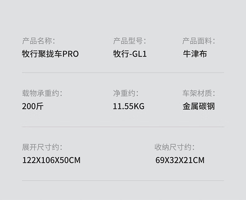 牧行露营车户外折叠小推车聚拢型带桌板餐车便携拖车GL1 200L 曜石黑+遮阳顶棚