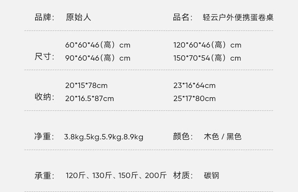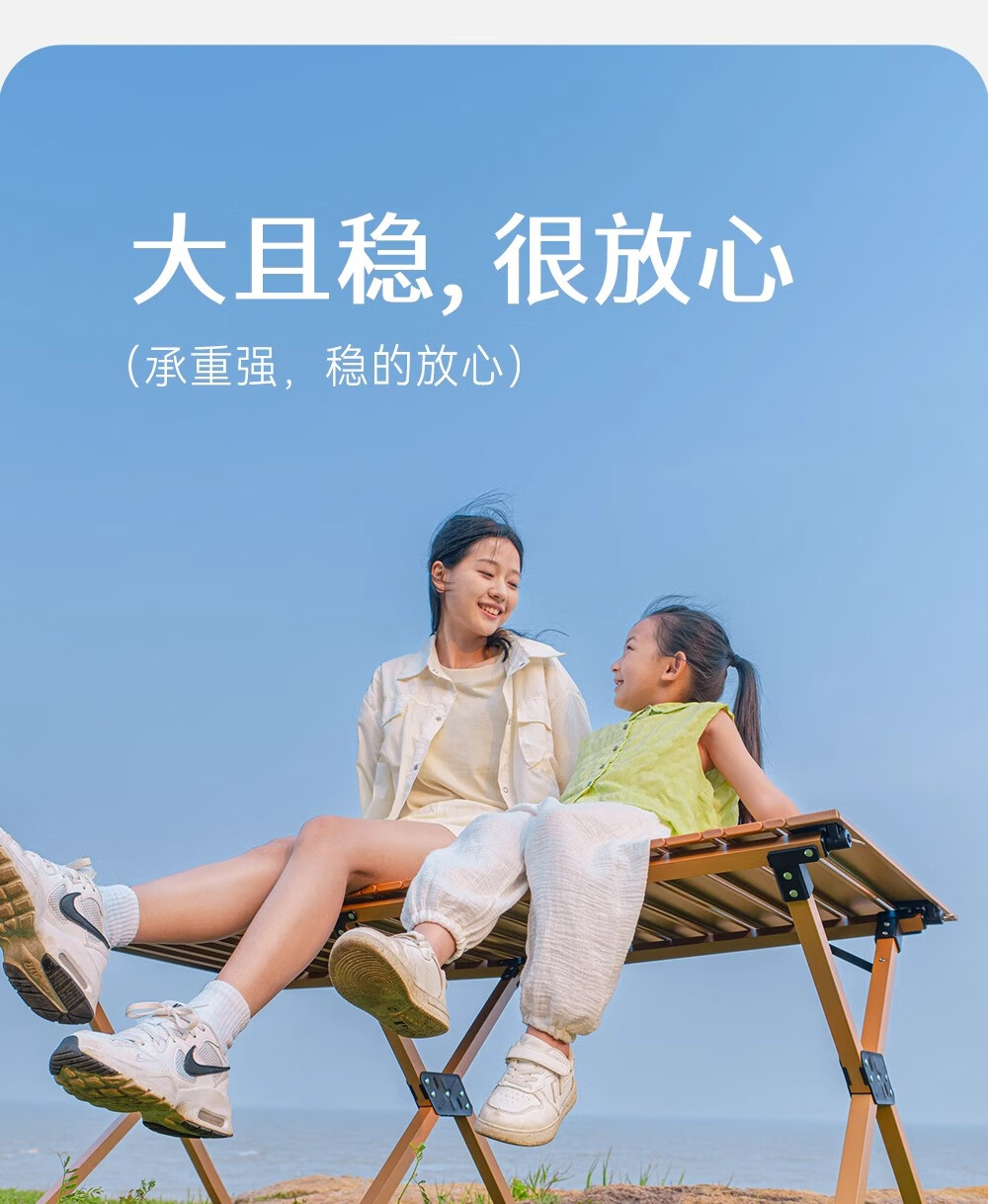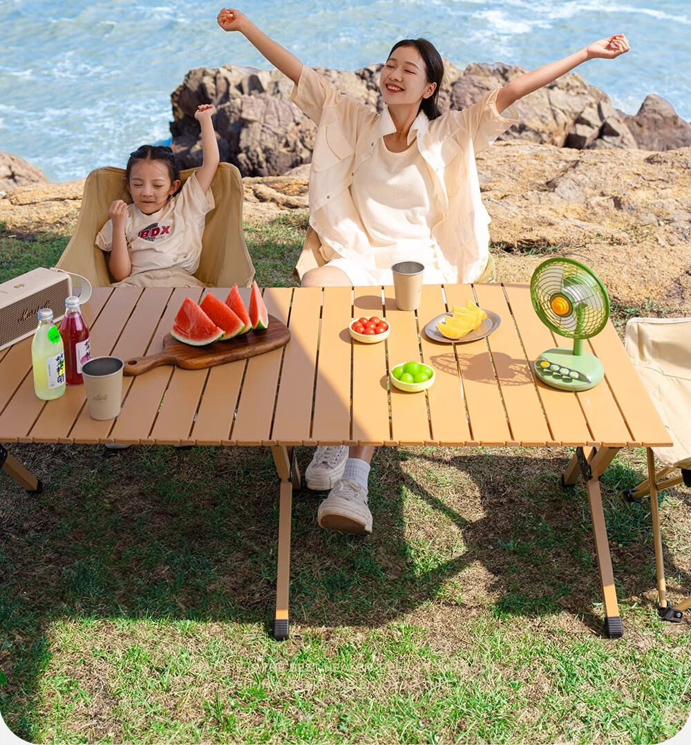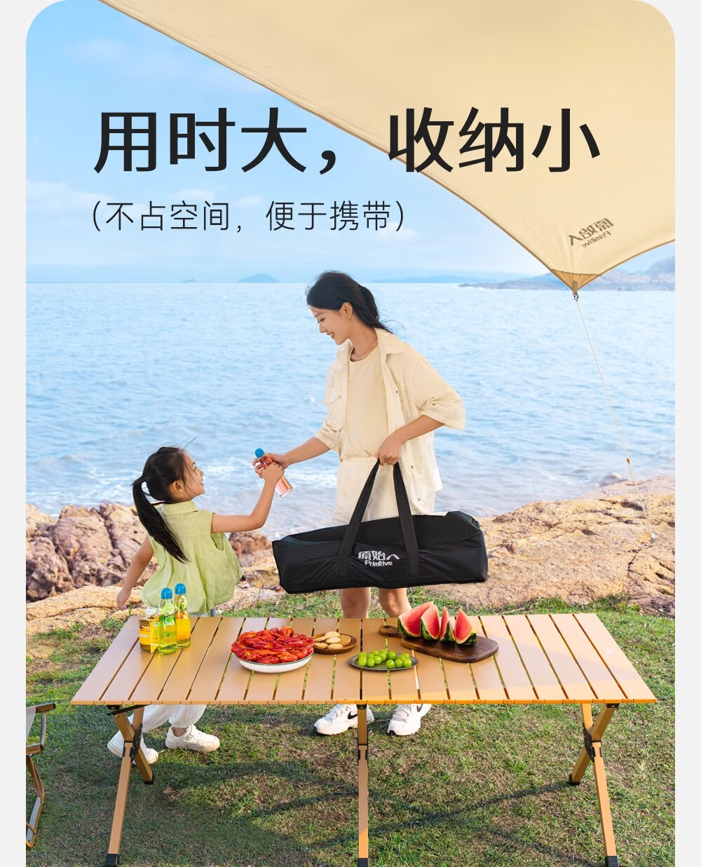 原始人户外蛋卷桌便携式折叠桌野餐桌椅露营装备用品野炊野营套装 120款木色桌+加高木色云舒椅*4