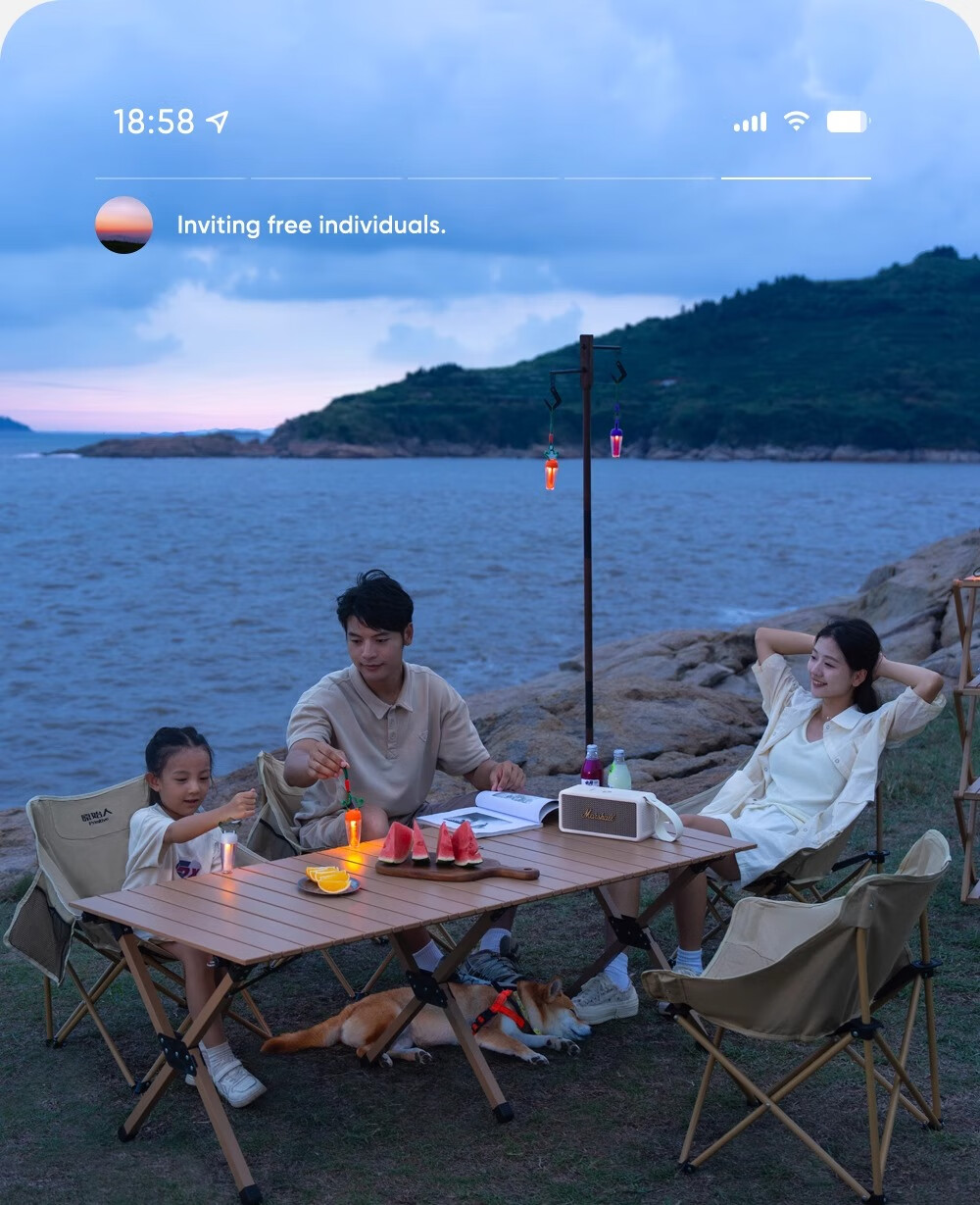 原始人蛋卷桌露营桌椅户外折叠便携式野餐全套装备新款桌椅套装野营摆摊 120cm薄雾紫+经典款月亮椅*6