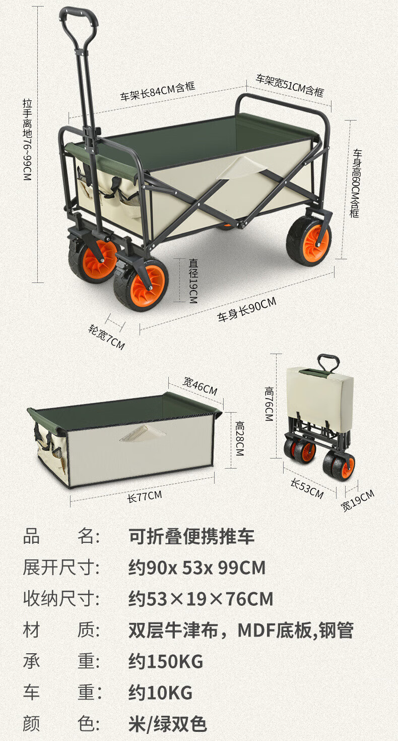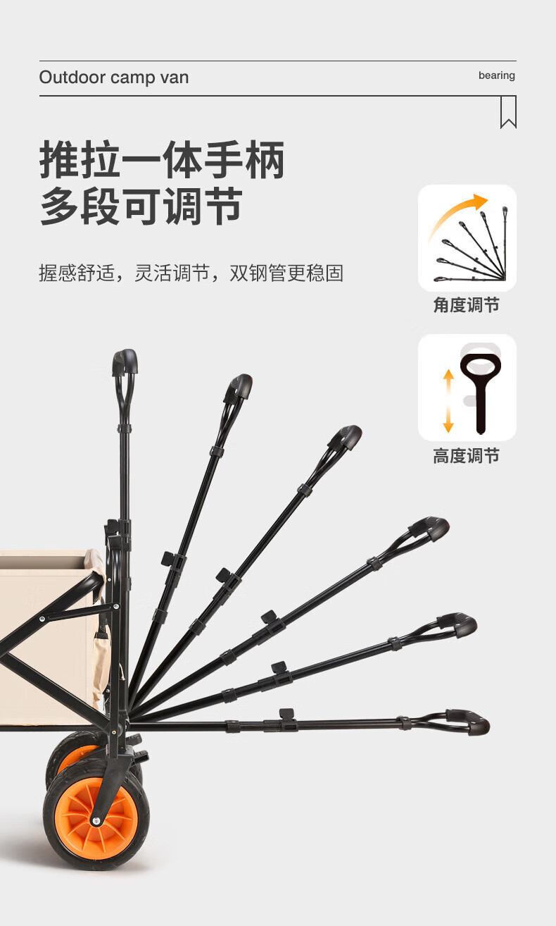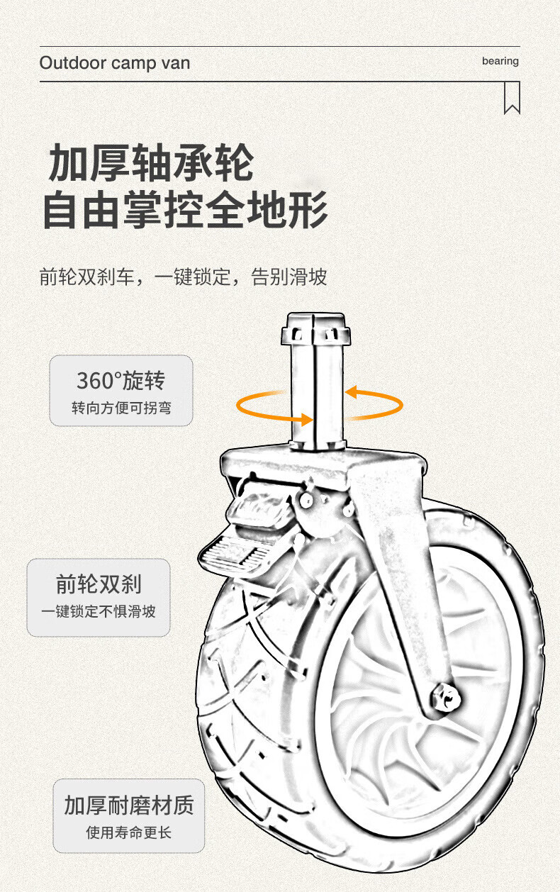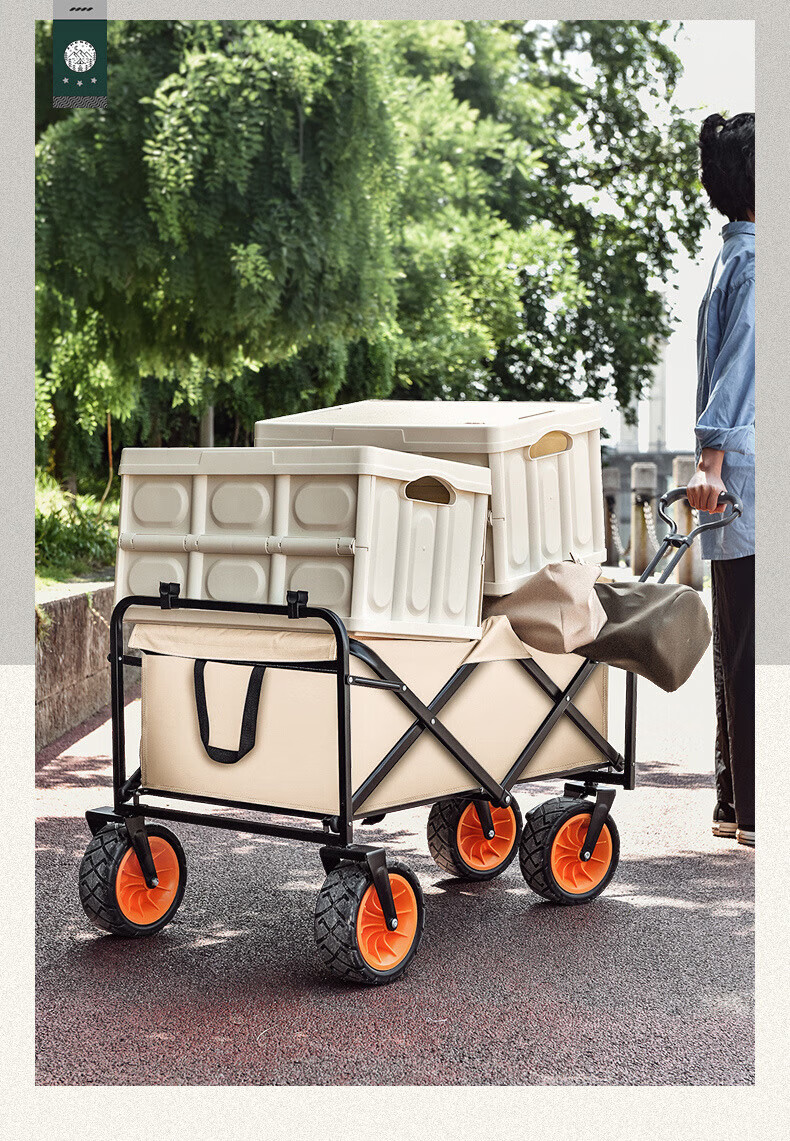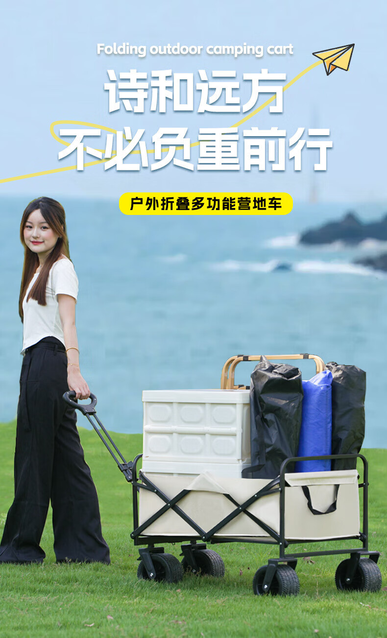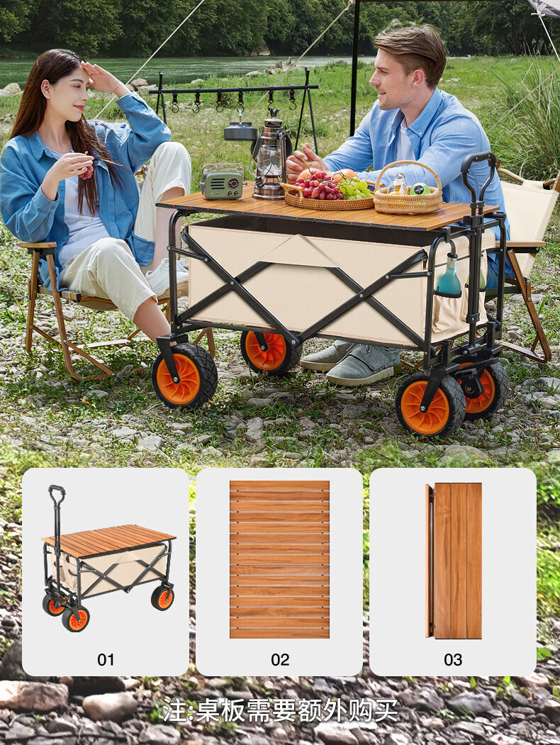 柏潮露营推车折叠小推车万能摆摊野餐超大便携越野户外营地拉杆野营车 【升级露营车】2025新款 【工厂直发】 单发适配8寸黑色或黄色桌板