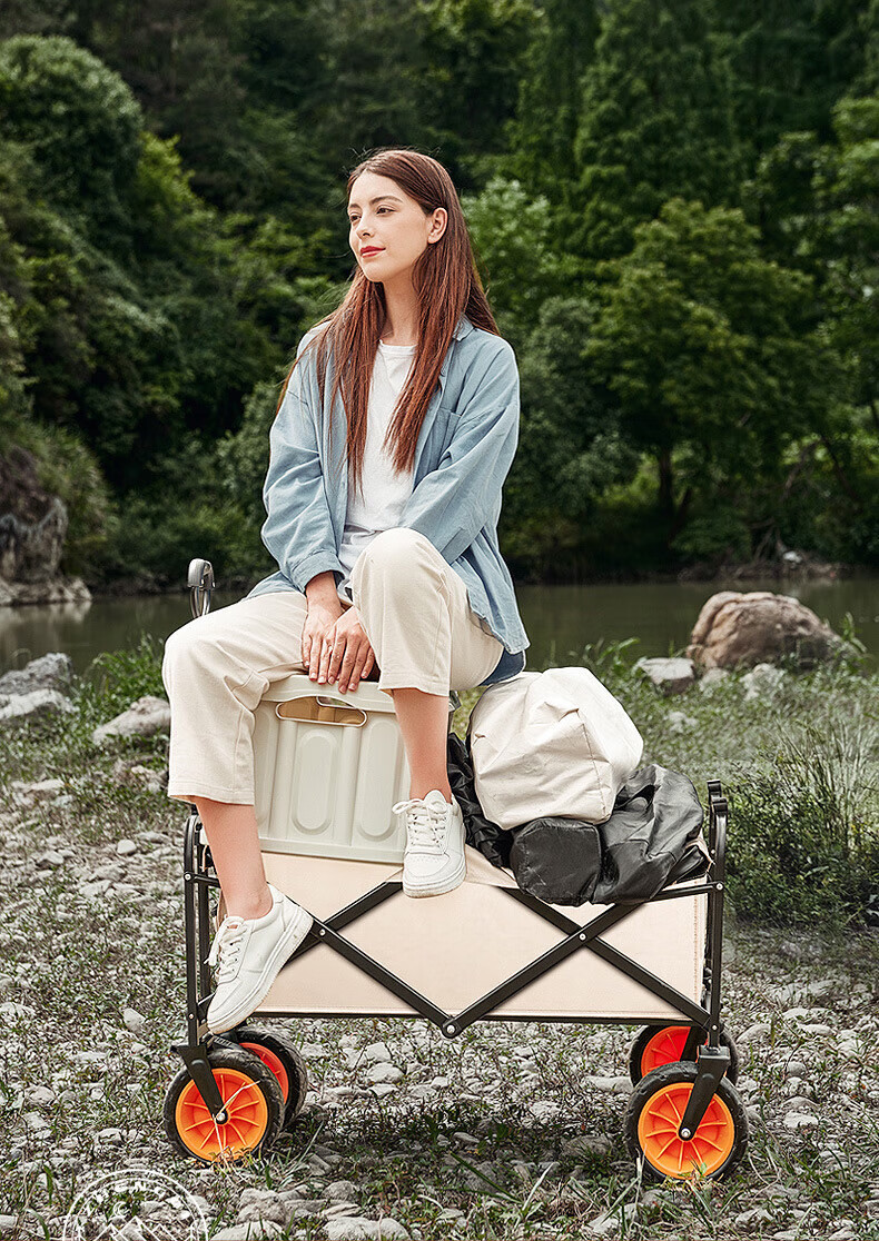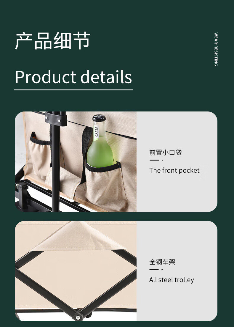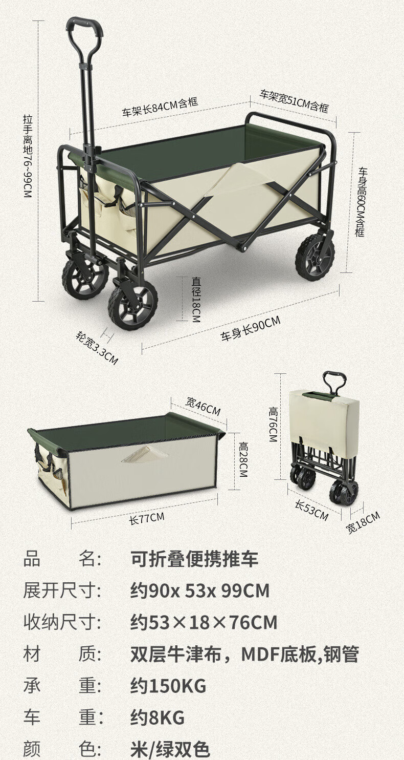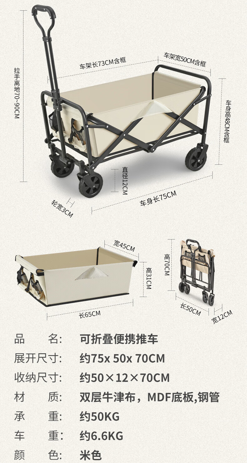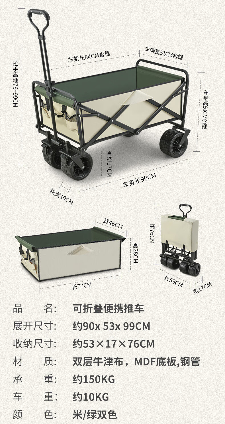 柏潮露营推车折叠小推车万能摆摊野餐超大便携越野户外营地拉杆野营车 【升级露营车】2025新款 【工厂直发】 单发适配8寸黑色或黄色桌板