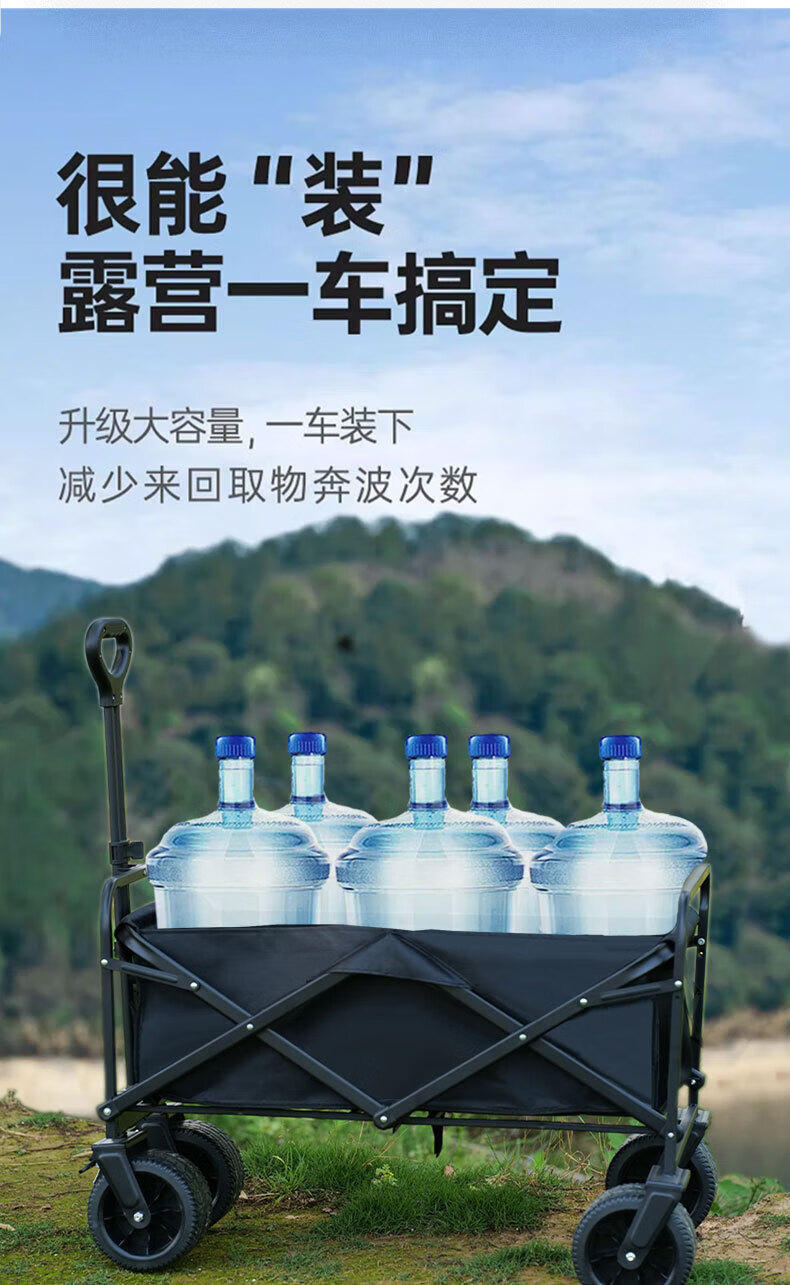 露营推车户外营地车折叠车摆摊拖车野餐露营大容量手拉取快递车 冲量款不含车-黑色1100l