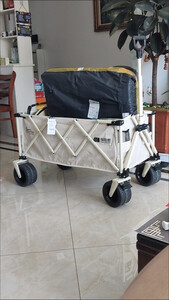 质量确实很好,车的钢材都是真材实料,特别是车轮,感觉特别结实,推起来很稳当,钴辘顺滑,承重没问题,拉起来也贼轻松,钢管和布料 都很厚实,准备出去露营了