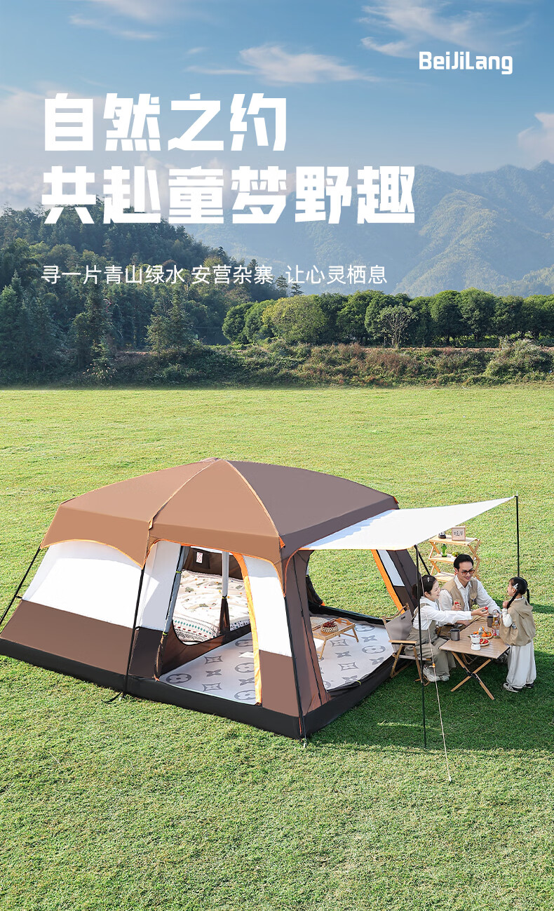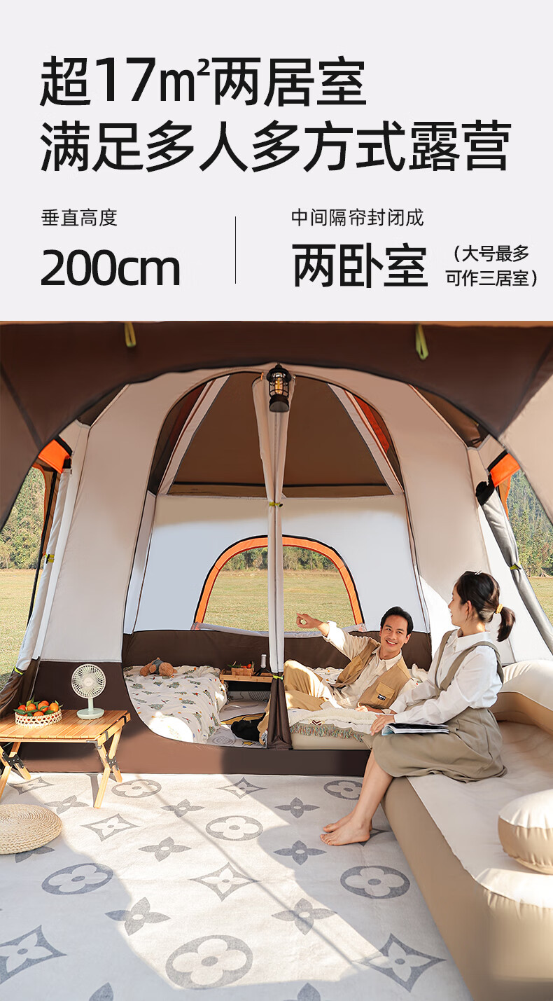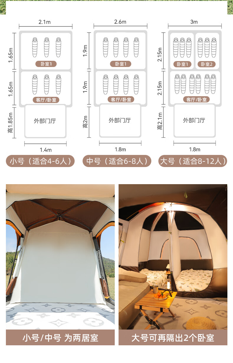 北极狼(BeiJiLang)帐篷户外露营两室一厅双层防晒防雨4-12人大空间家庭野营装备全套 【两室一厅大门厅】中号6-8人
