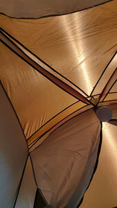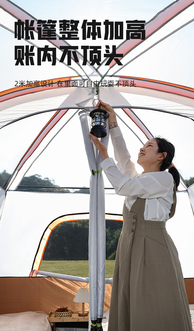 店家发的安装视频,很快就搭好了。帐篷空间很大,高度有2米,睡4个成年人很宽松。内外账都有,晴天用内账,采光通风好,雨天用外账,不怕风雨。还没有去露营,后期看效果。