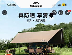 Naturehike挪客云霄黑胶天幕帐篷户外防雨防晒超大露营野营天幕便携遮阳棚 【11㎡ 6-8人】 深咖/小号