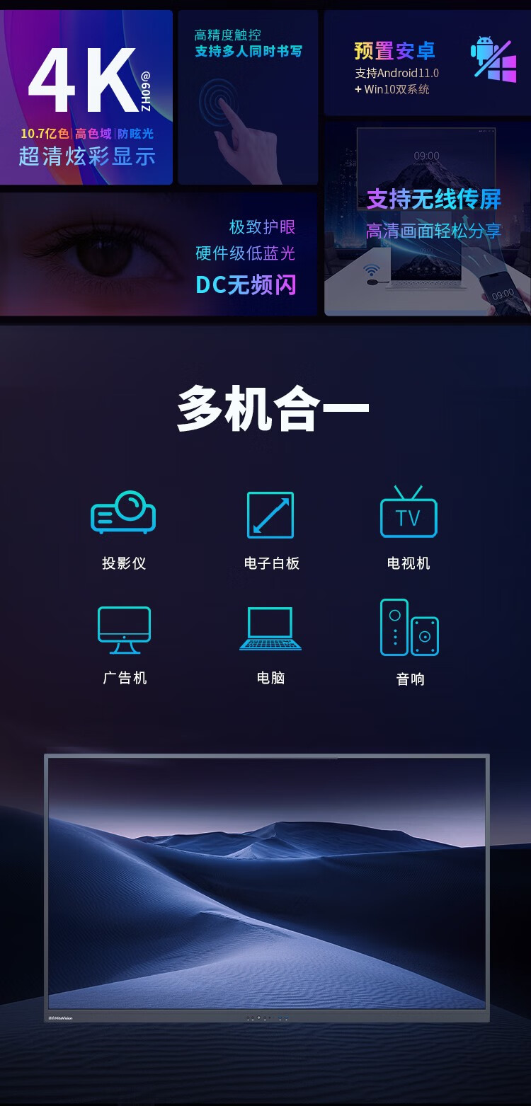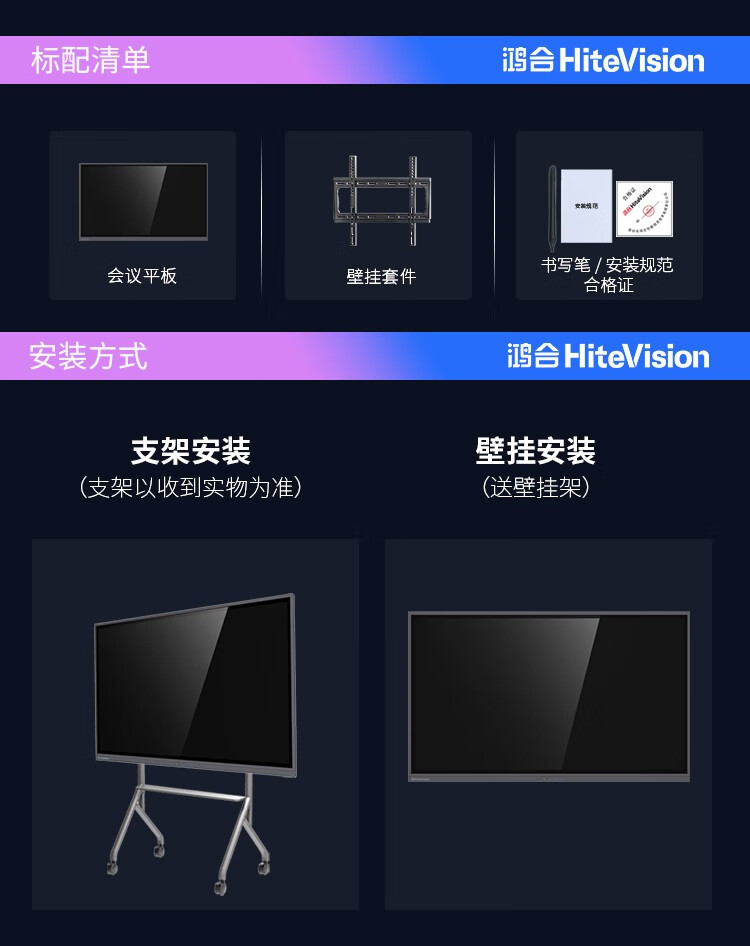鸿合(HiteVision)教学一体机培训会议平板智能触摸屏多媒体电子白板 JA-75英寸双系统8+256g【壁挂架】