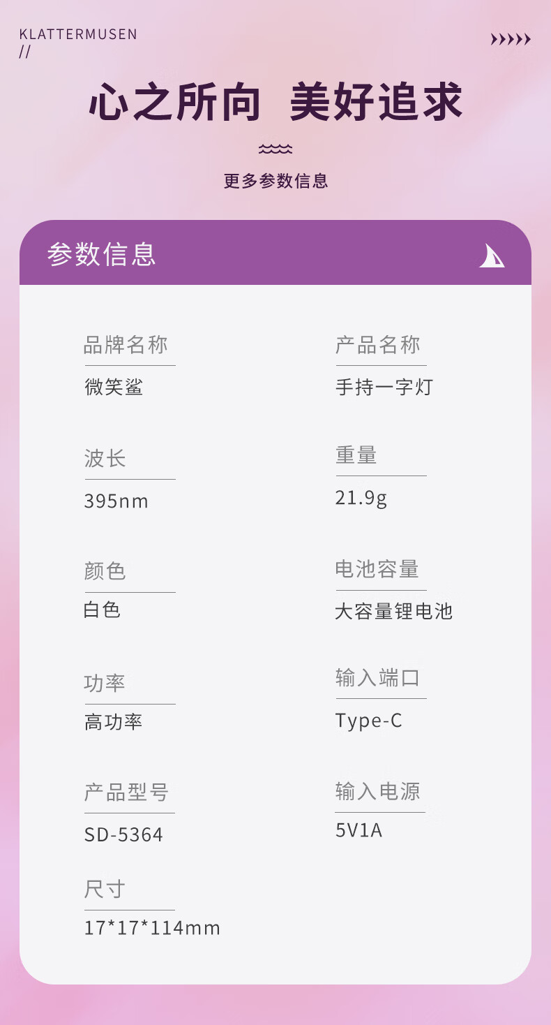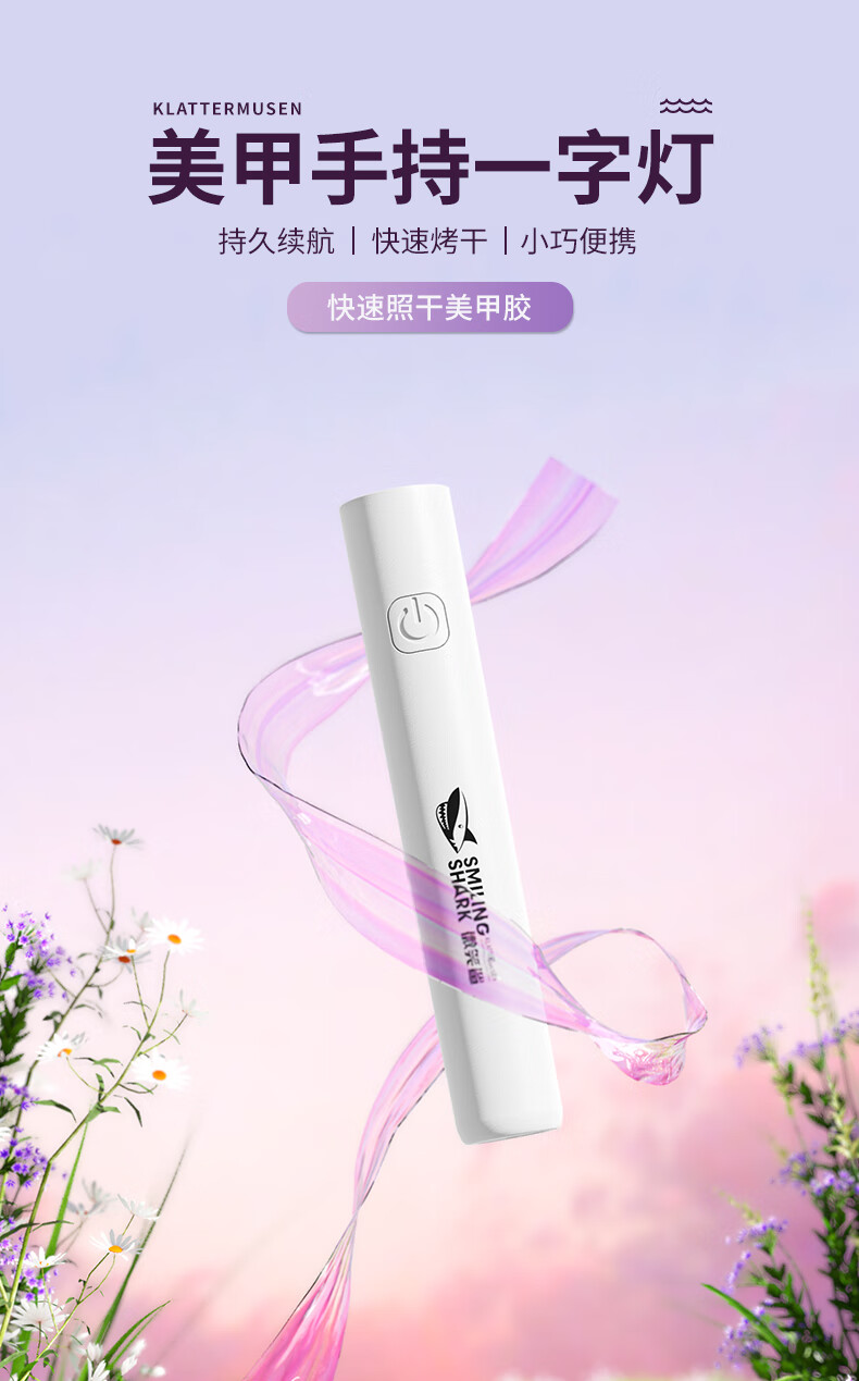 微笑鲨手电筒美甲灯一字灯照灯速干手电筒甲油胶紫外线照干穿戴甲指甲油 速干美甲灯【70毫安】新手可用 超强聚光/闪充+不黑手/两档定时