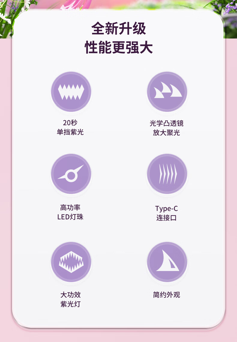 挺好的,很亮的紫光灯,做美甲可以,用着很方便的,小巧轻便,非常方便,充电也很方便