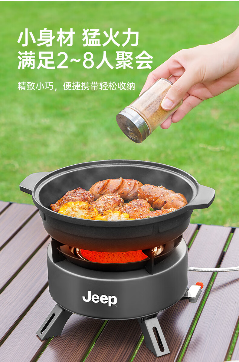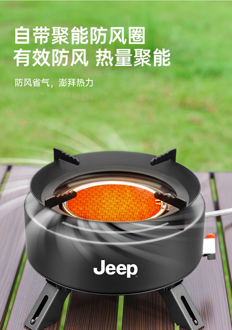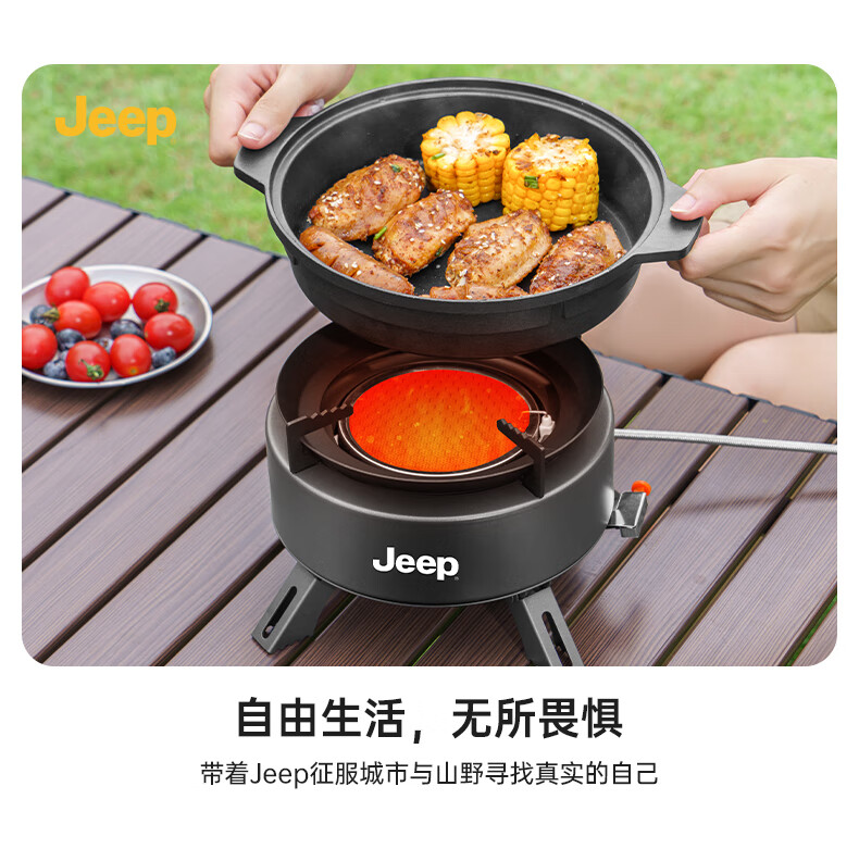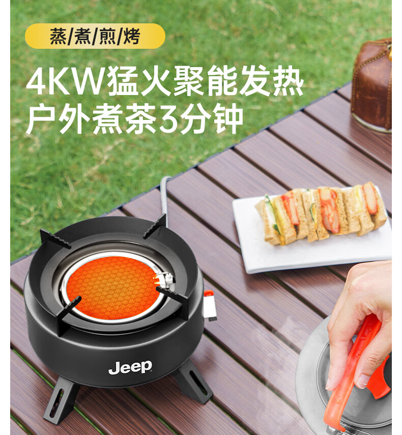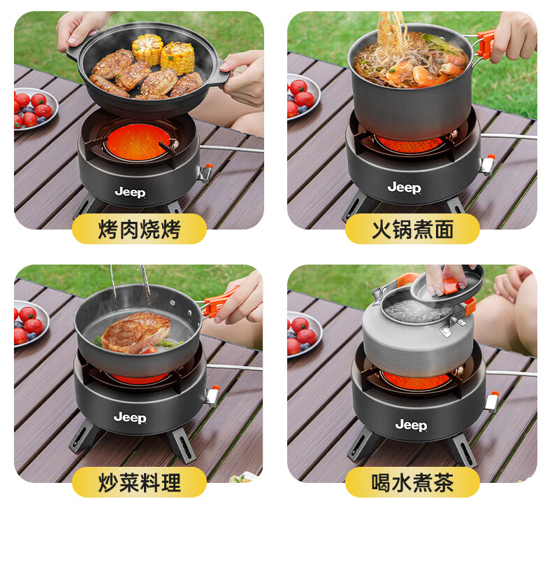JEEP户外卡式炉户外炊具煮茶炉红外线防风分离式炉头露营 聚能炉灰+4气+套锅