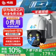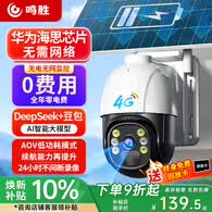 鸣胜太阳能摄像头4G终身免费流量室外农村户外院子防水监控器360度无死角带夜视可对话无需WiFi免插电