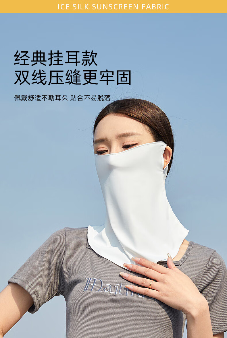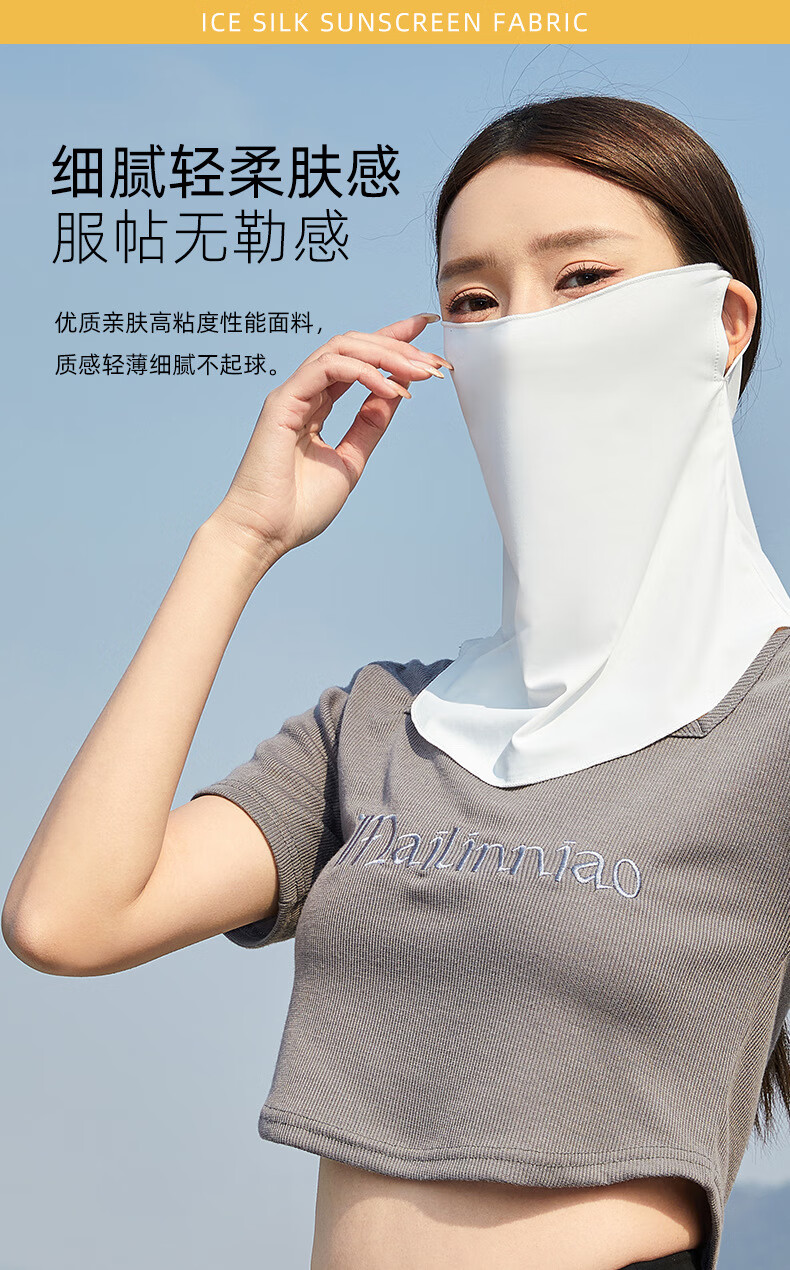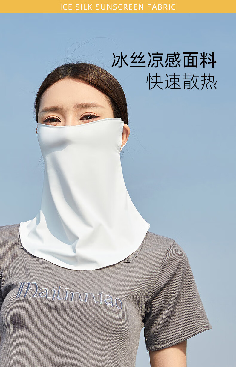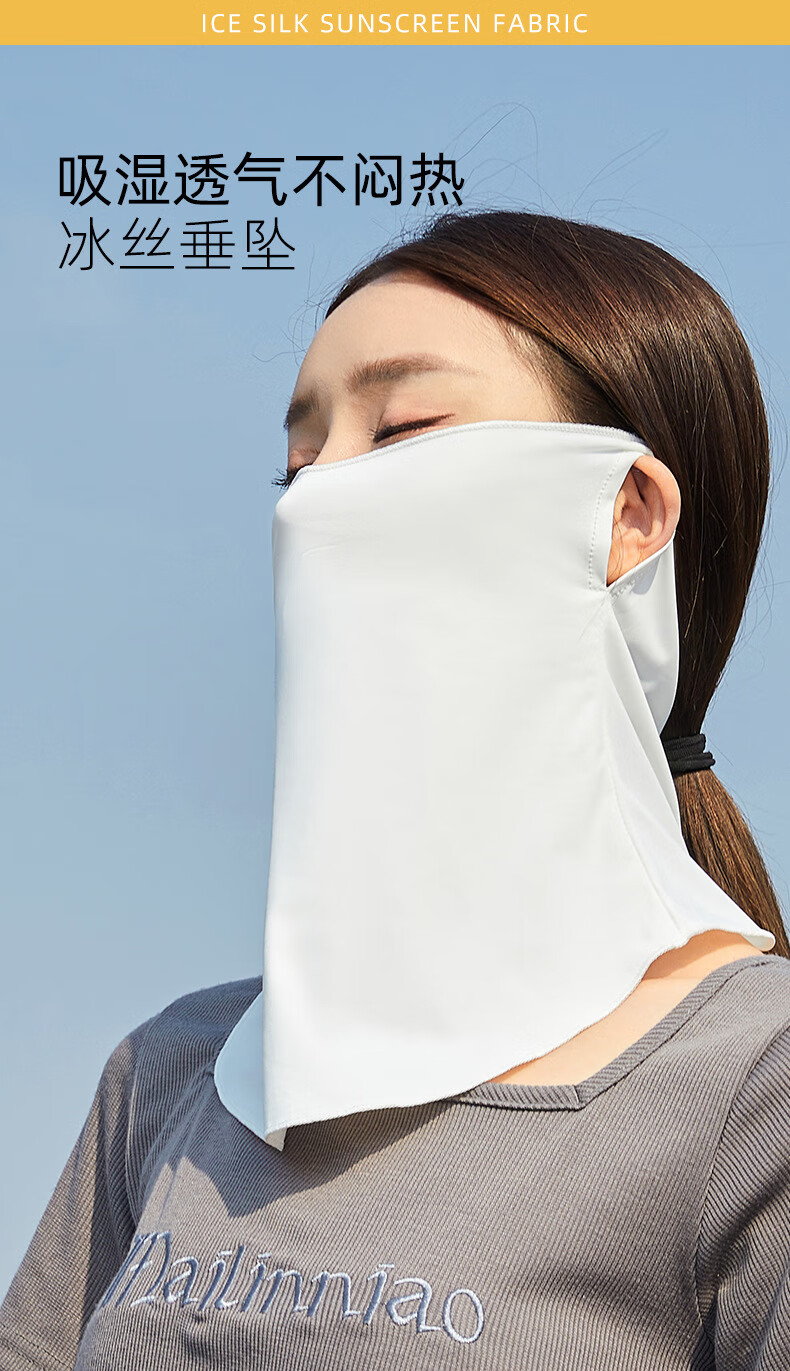 槿城冰丝防晒面罩女夏护颈遮阳透气骑行防晒面纱面巾挂耳面罩BT-09 云朵白【两个装】